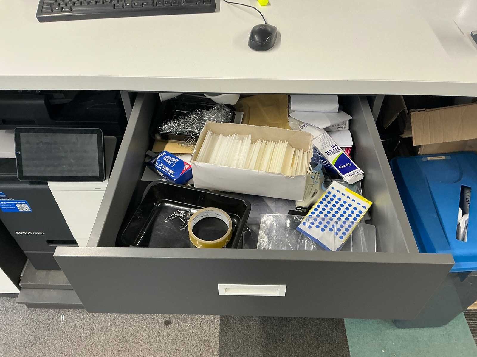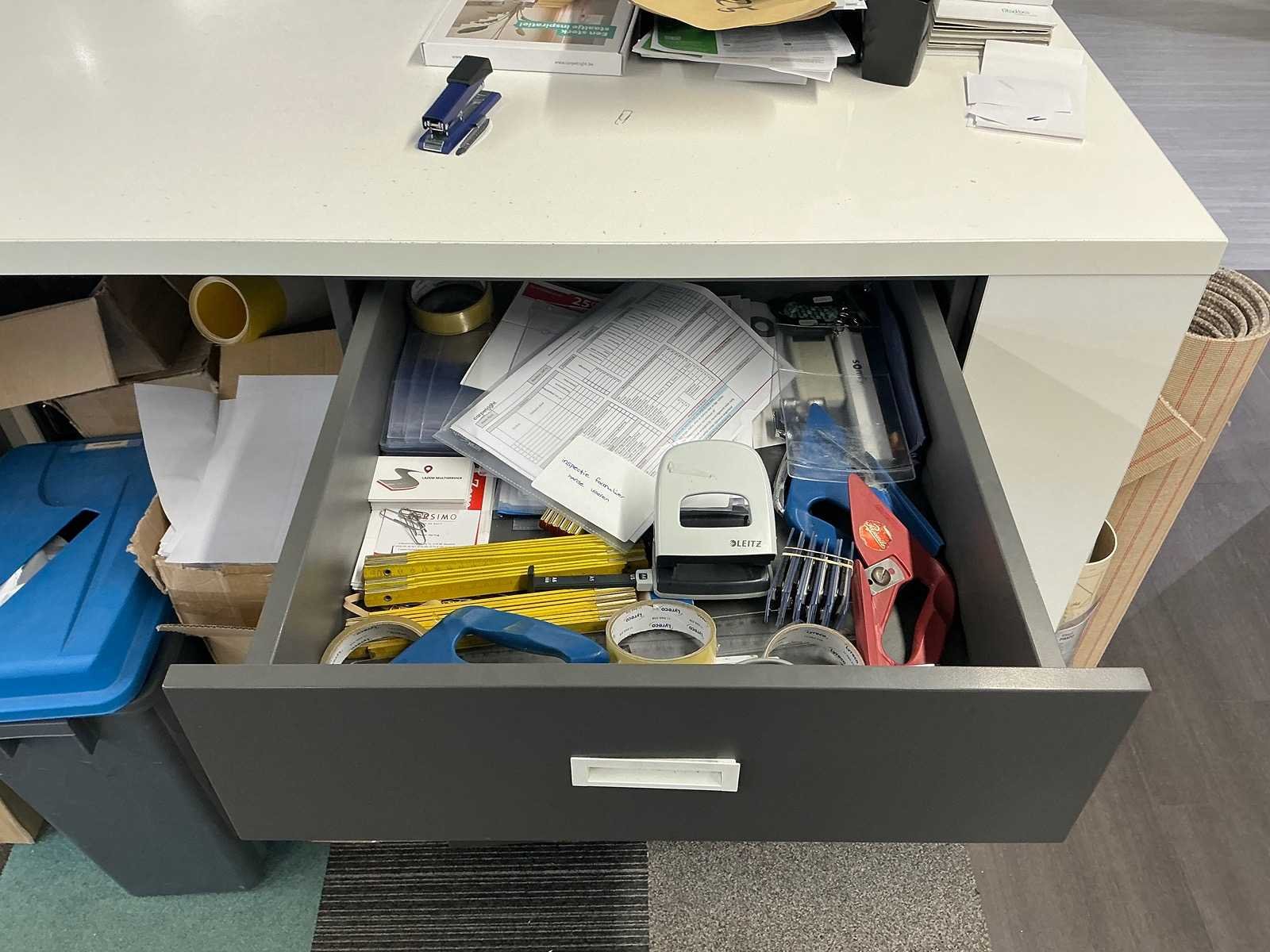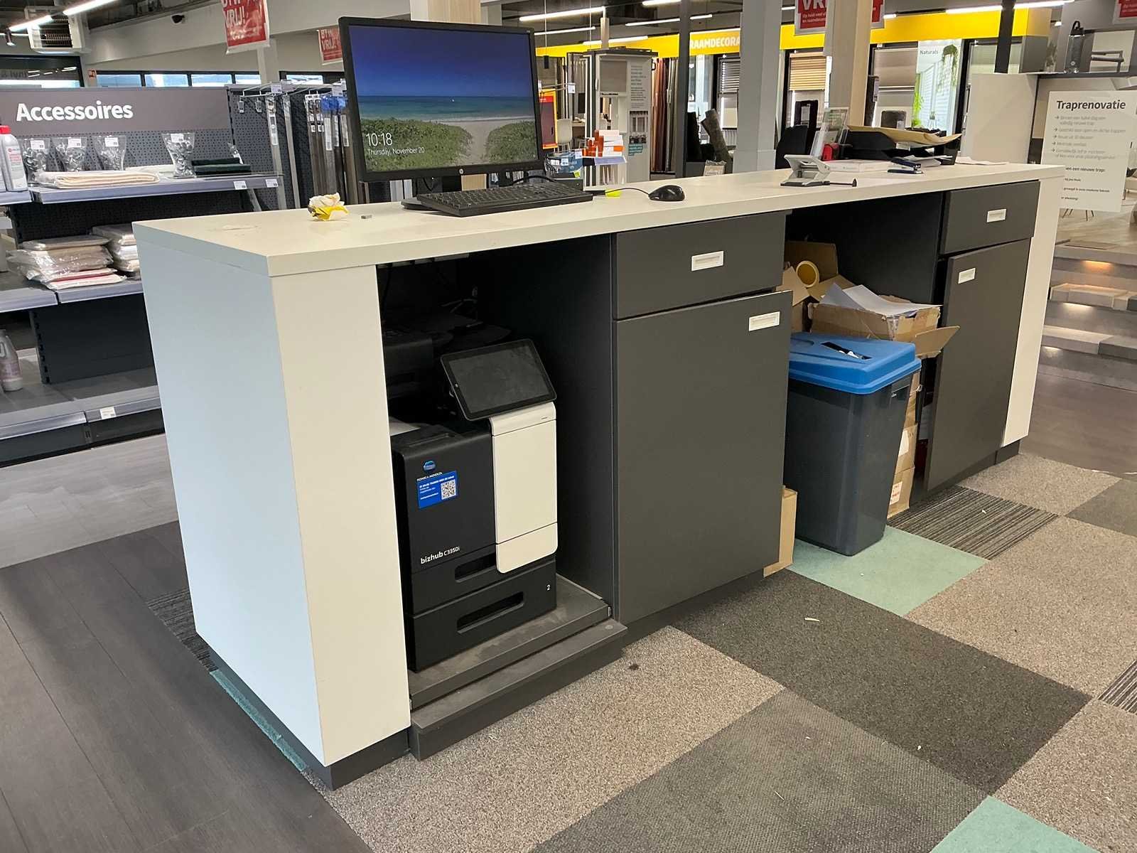Dit kavel dient door de koper professioneel gedemonteerd te worden. Inclusief inhoud. Eventuele administratie en ICT horen niet bij het kavel. Exclusief printer. Totale afmeting L: 3000mm Totale afmeting Breedte: 800mm Totale afmeting Hoogte: 2800mm