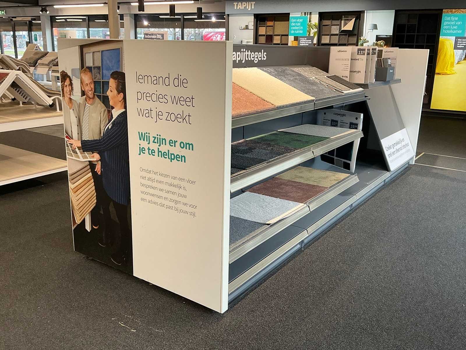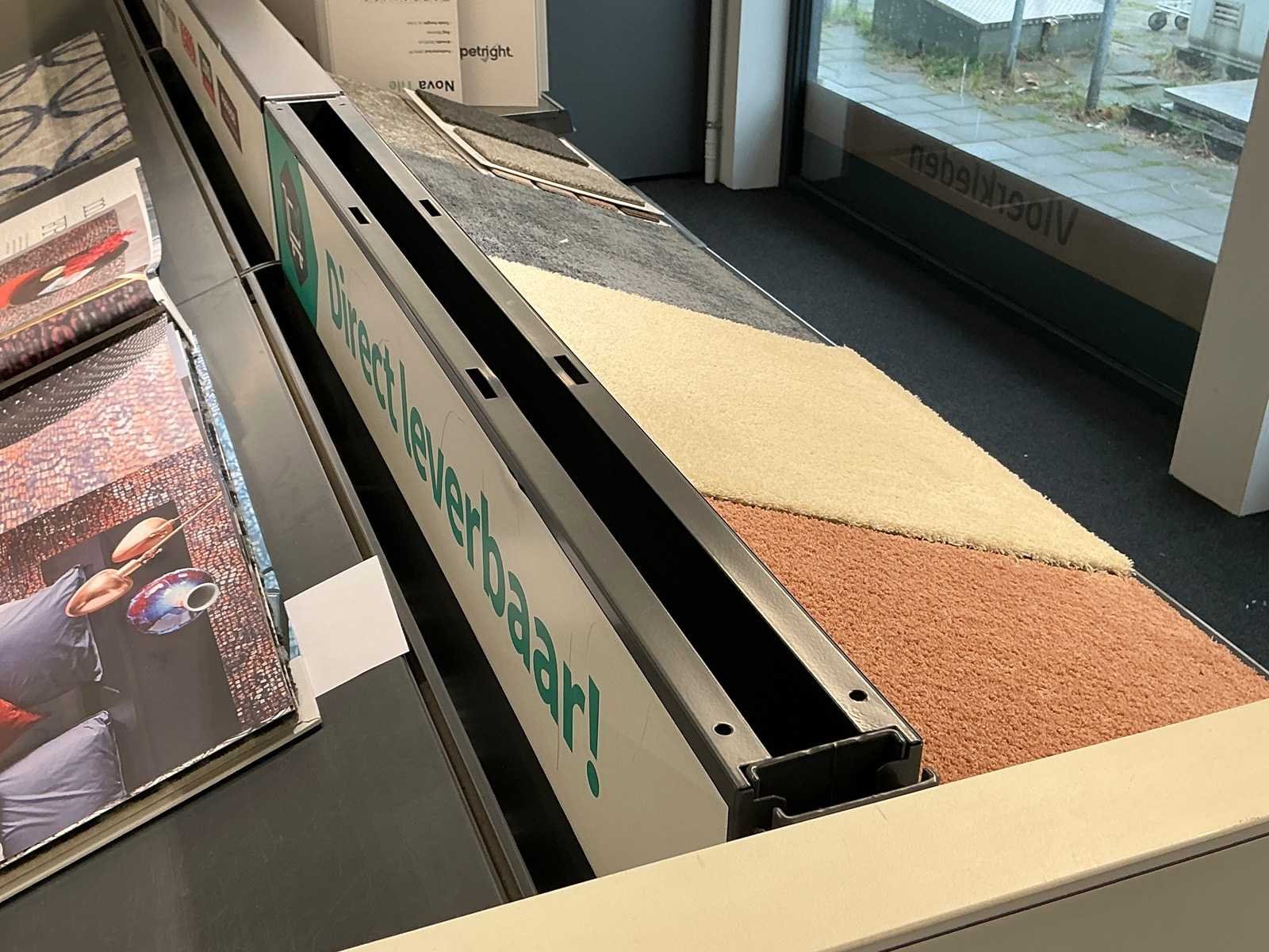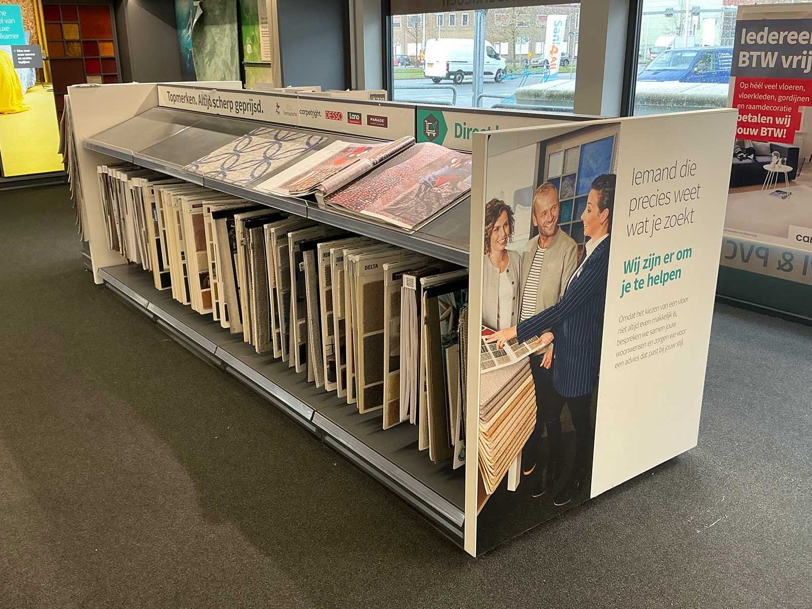 Exclusief stof samples en boeken. Inclusief inhoud. Totale afmeting L: 4100mm Totale afmeting Breedte: 1250mm Totale afmeting Hoogte: 1430mm