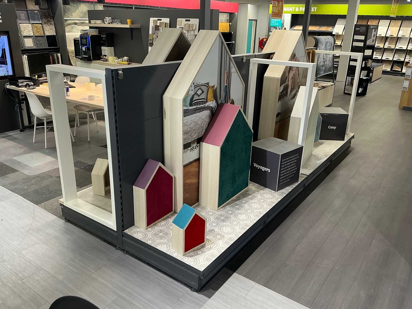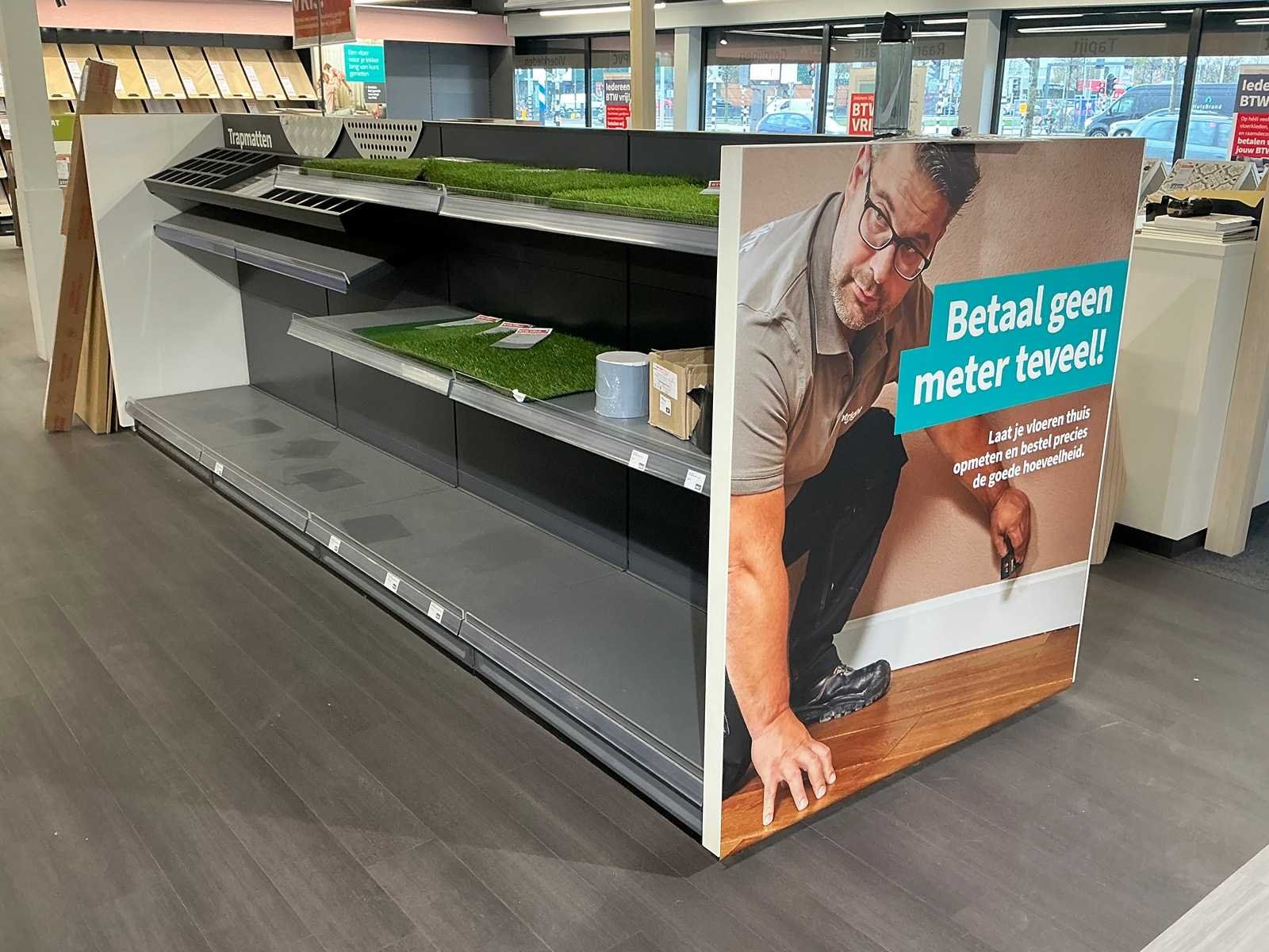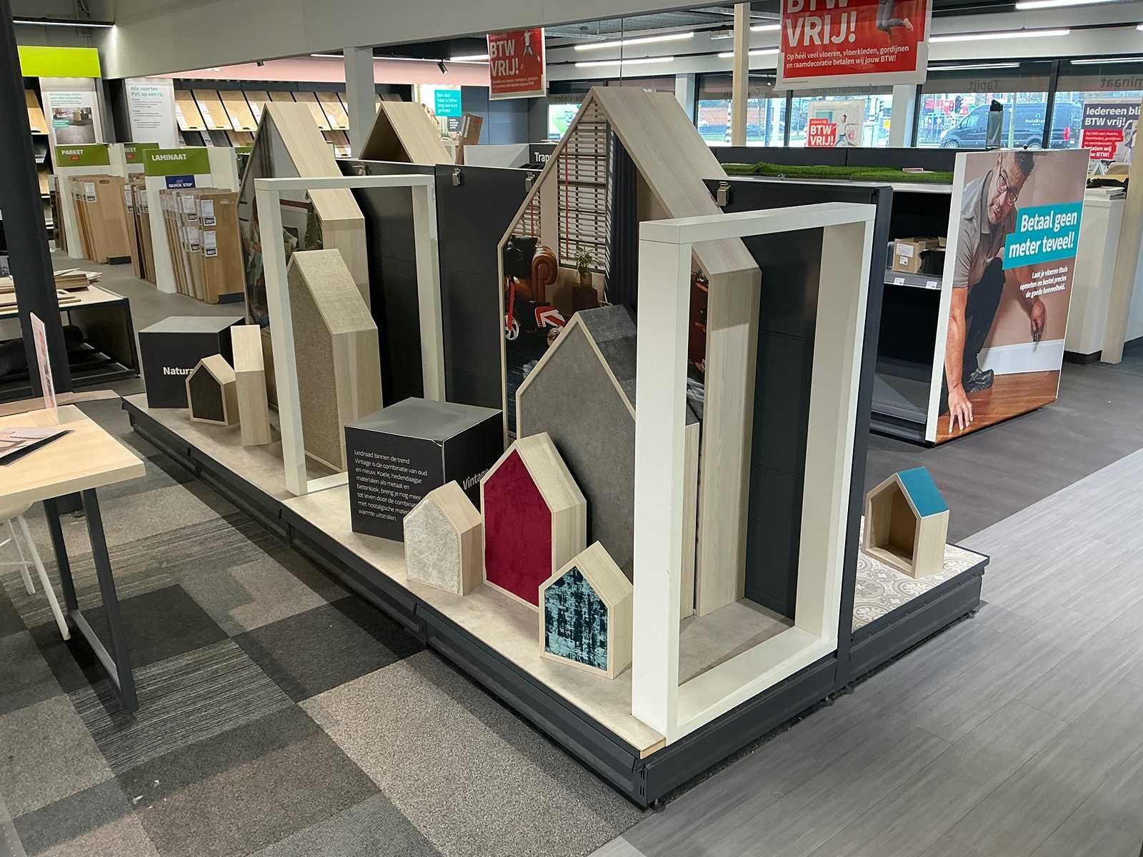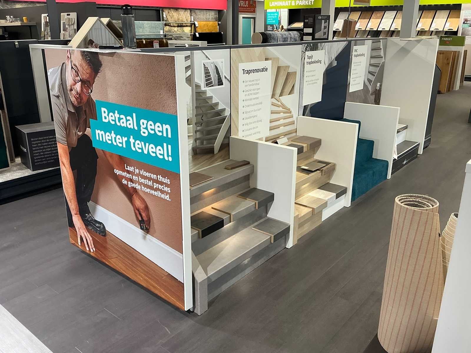 Exclusief stof samples en boeken. Inclusief inhoud. Totale afmeting L: 4100mm Totale afmeting Breedte: 1250mm Totale afmeting Hoogte: 1430mm