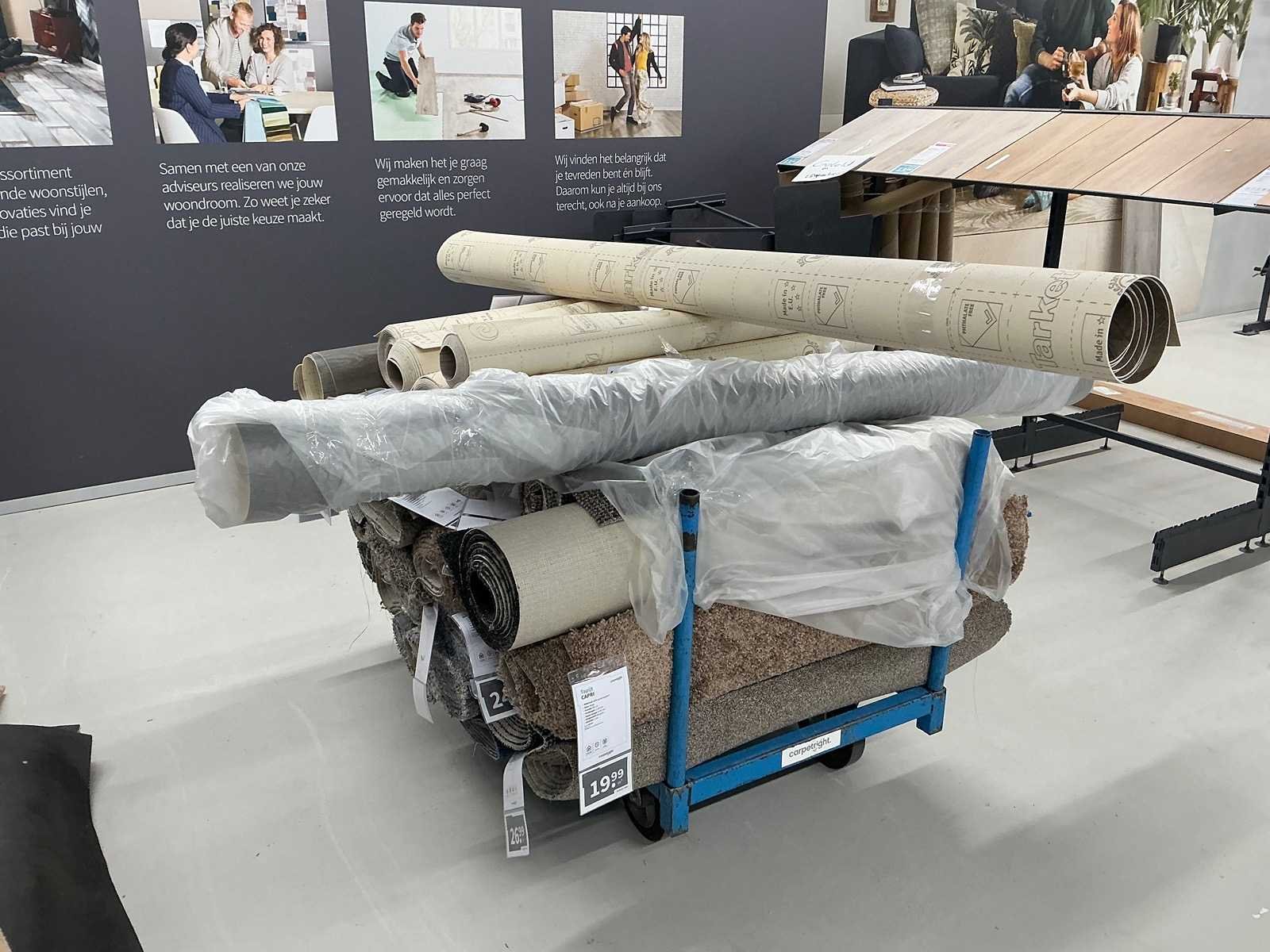 Partij diverse rollen tapijt en vinyl