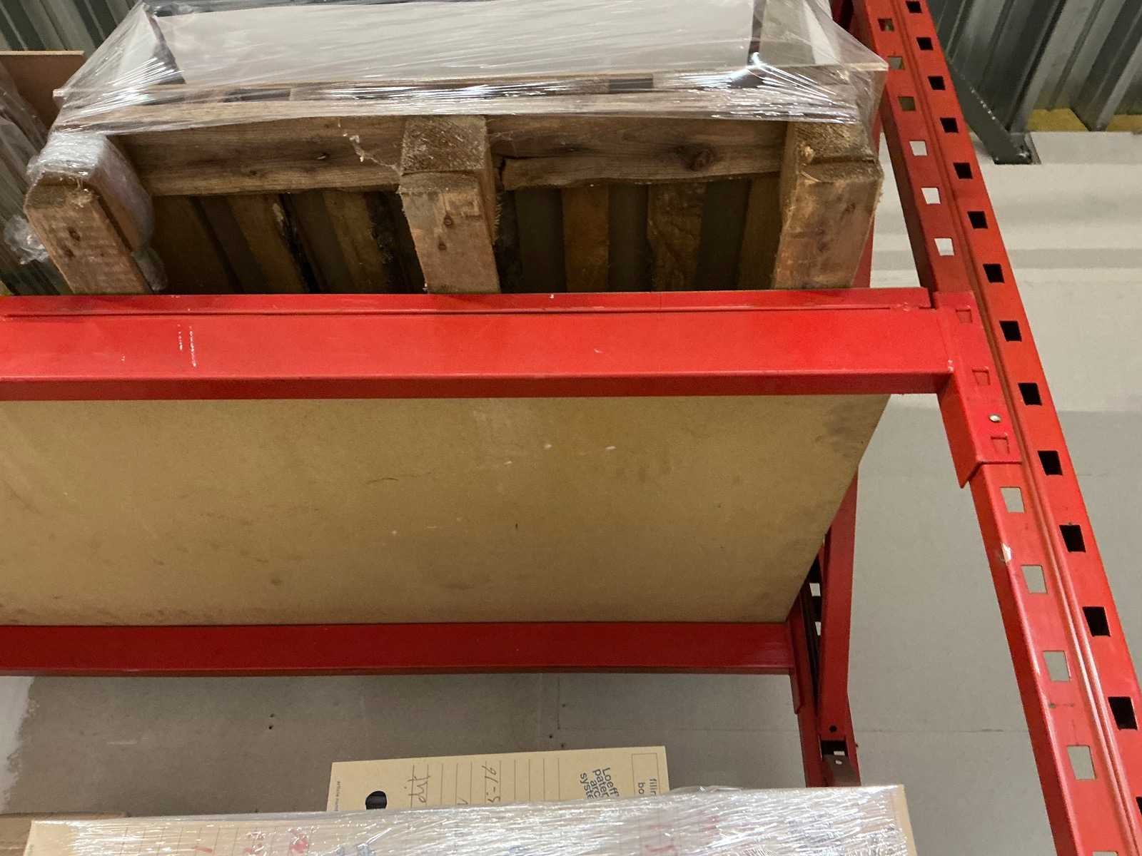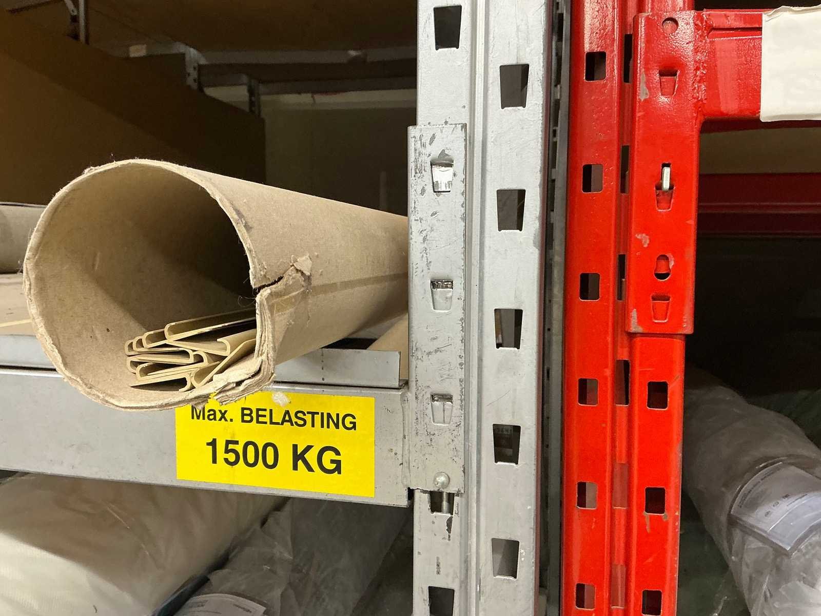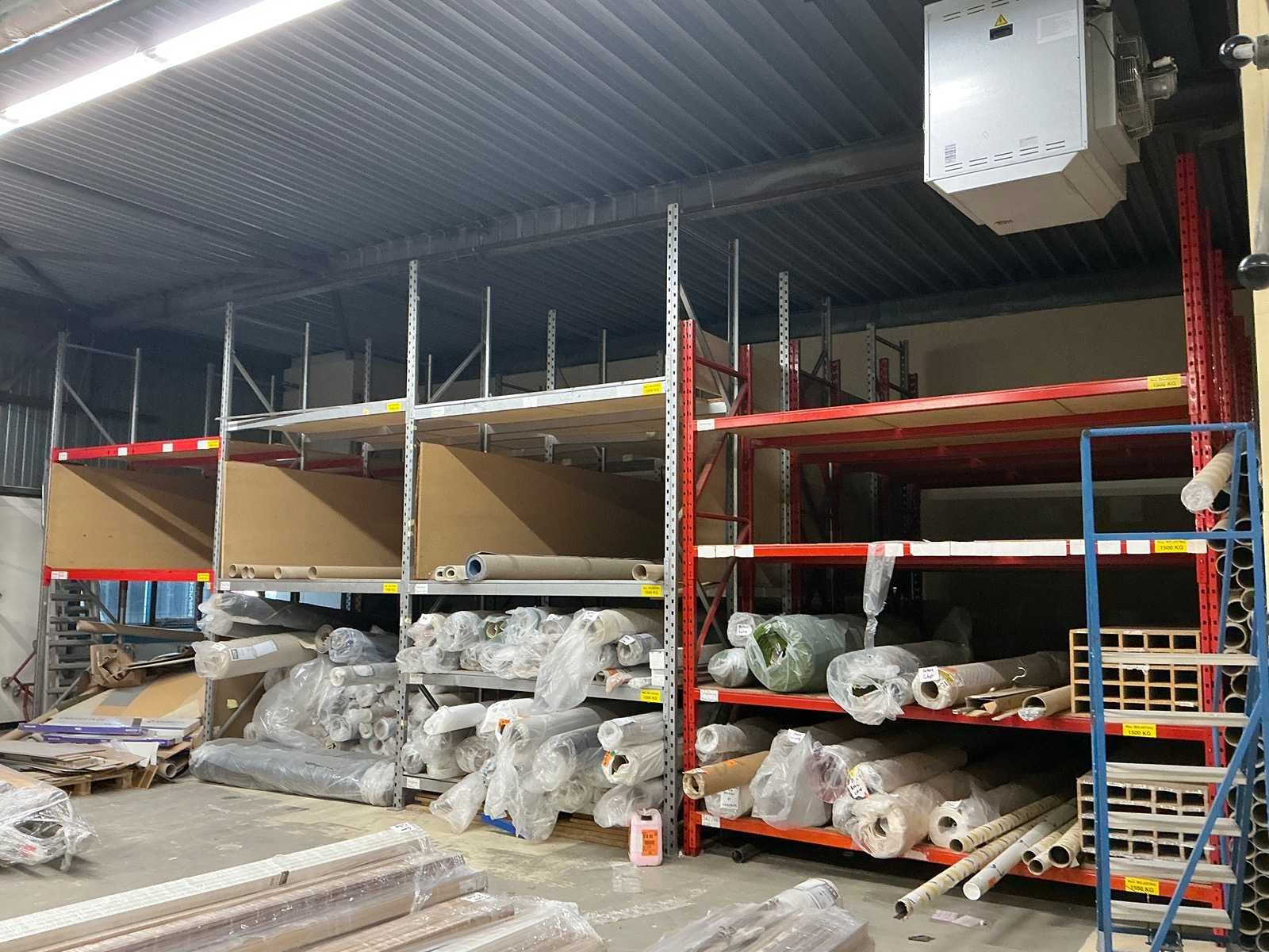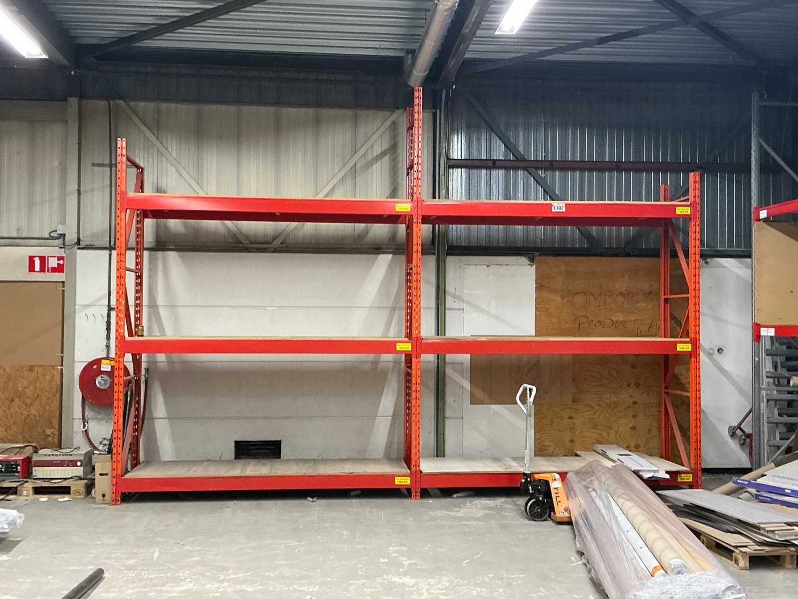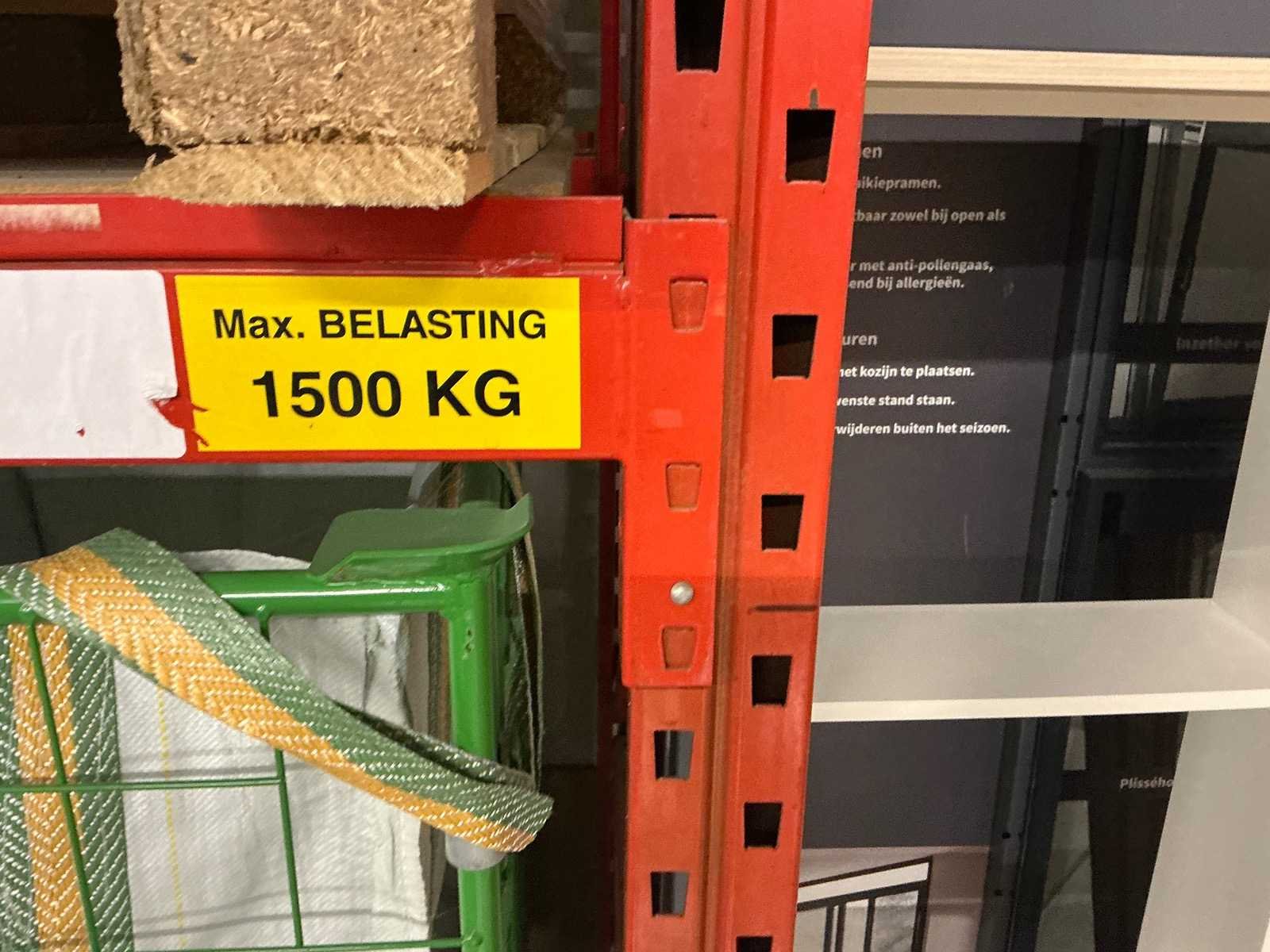 Dit kavel dient door de koper professioneel gedemonteerd te worden. Stellingen zijn 1050x450x420, 600x90x420 en 900x90x390 cm Exclusief inhoud