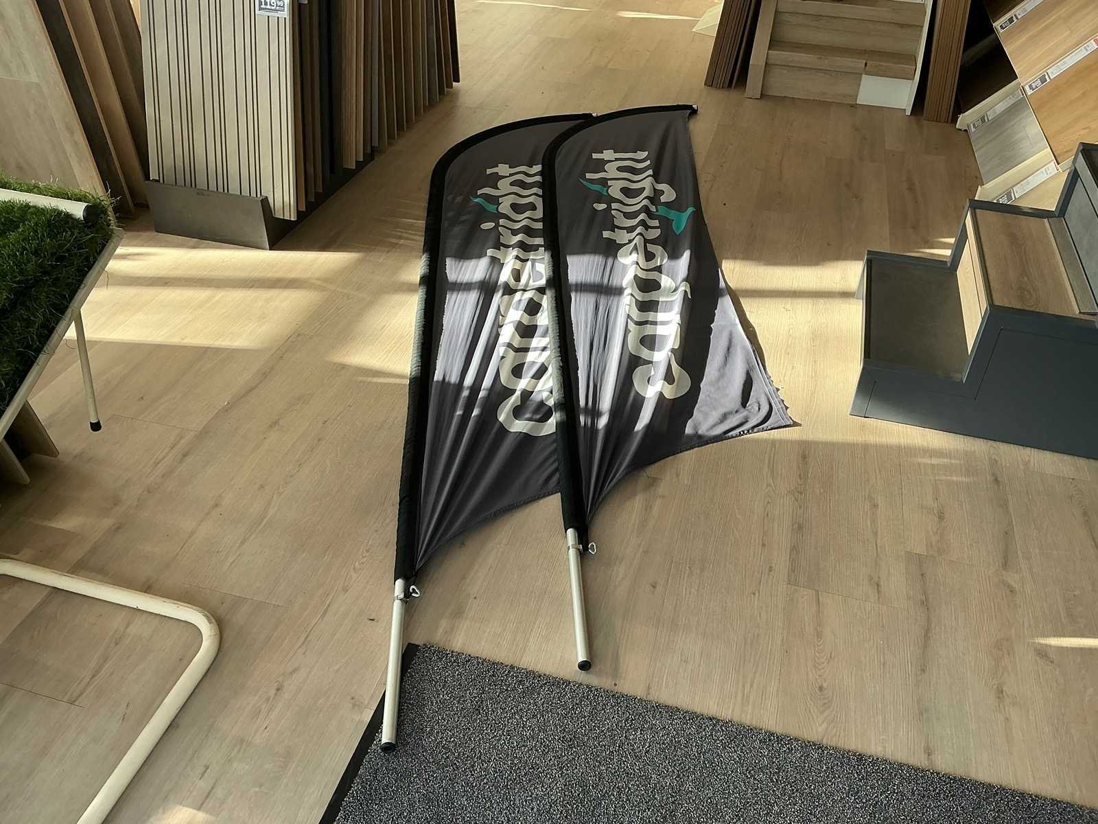 Stoepbord is 95x60x150 cm Vlaggen zijn 60x310 cm