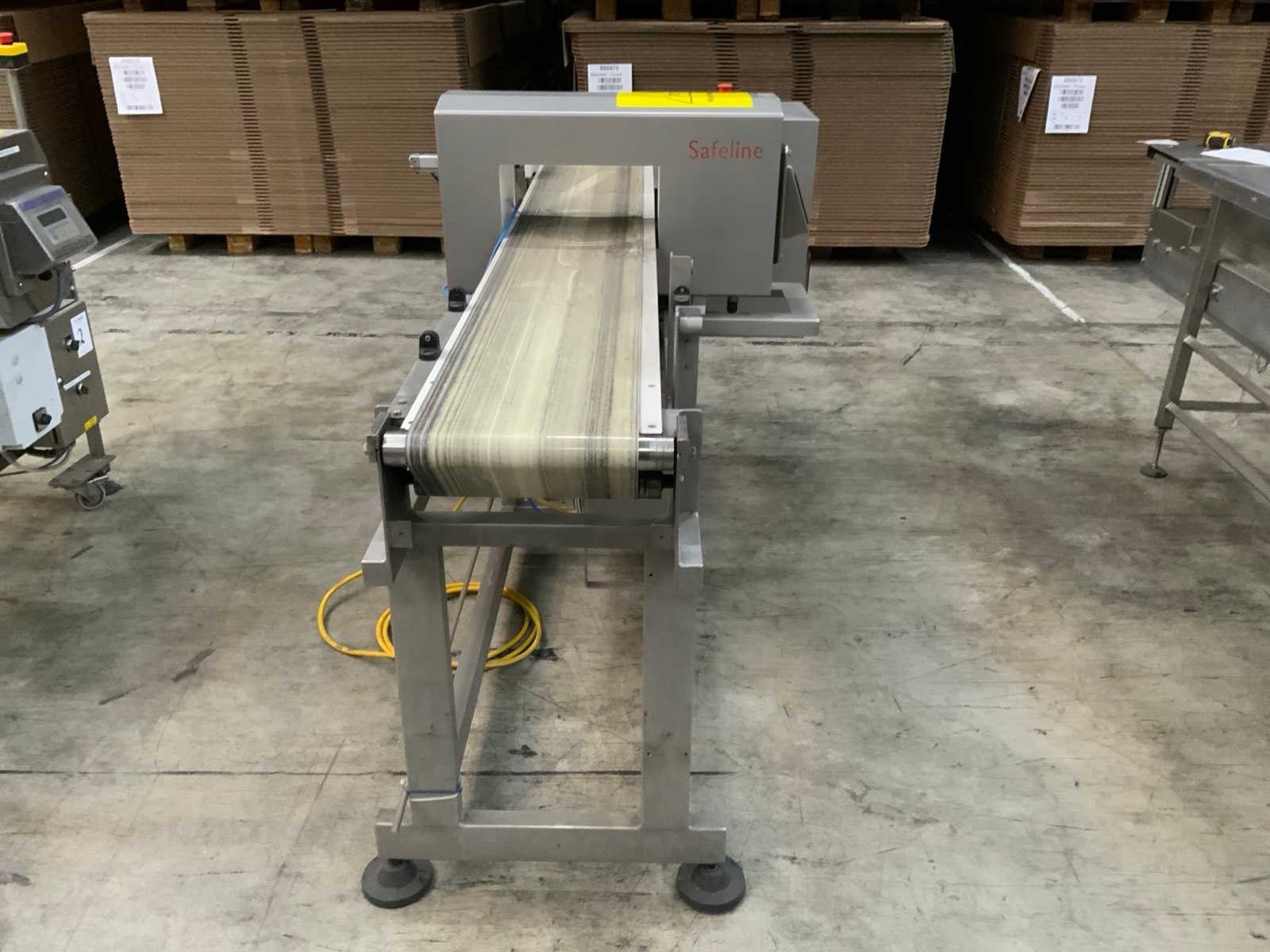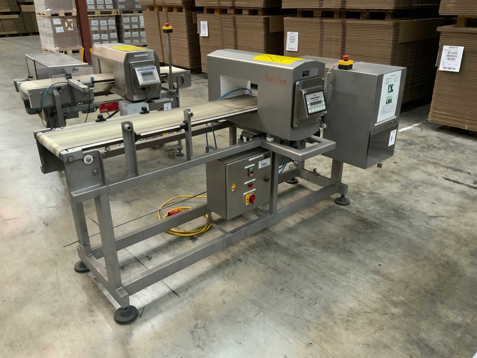 Doorvoer: B350 x H 155mm, voorzien van uitstoter Merk: Safeline Type: STD\350\175\SS\30\IL\V2 Bouwjaar: 1995 Serienummer: 13019 Transportband afm. l: 2220mm Transportband afm. b: 300mm Aansluiting: 400V Totale afmeting L: 2260mm Totale afmeting Breedte: 1200mm Totale afmeting Hoogte: 1210mm