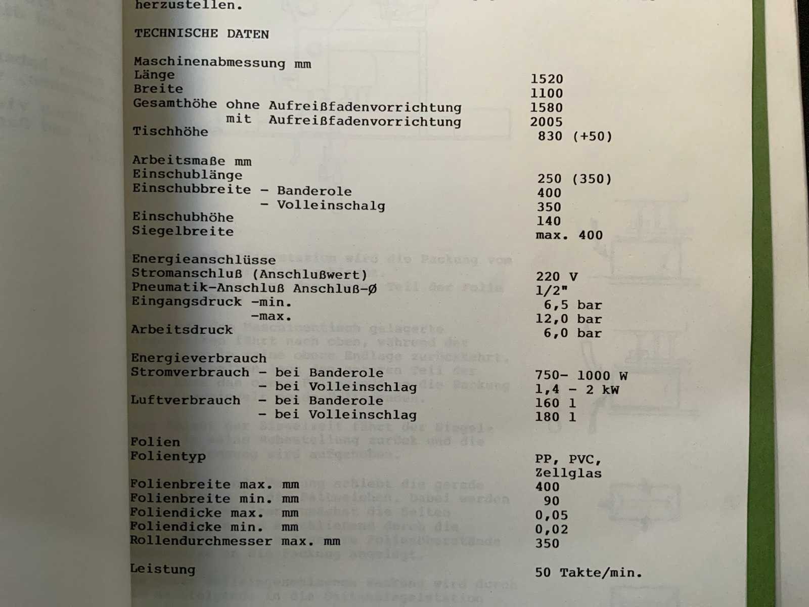 Folie breedte: 400mm Merk: Pester Type: Pewo-Fold Bouwjaar: 1989 Serienummer: -2338-8 Aansluiting: 400V Totale afmeting L: 1700mm Totale afmeting Breedte: 1450mm Totale afmeting Hoogte: 2350mm