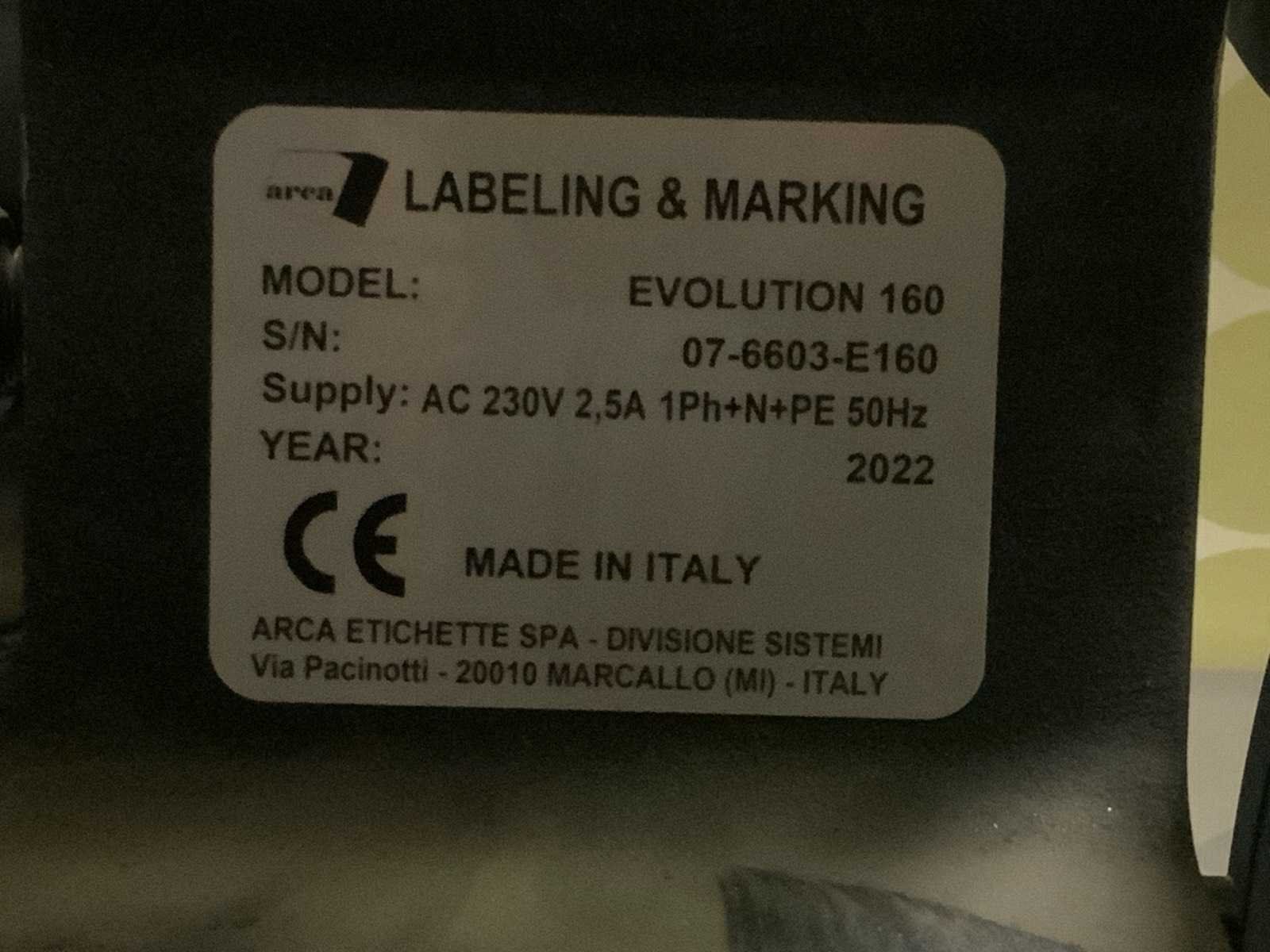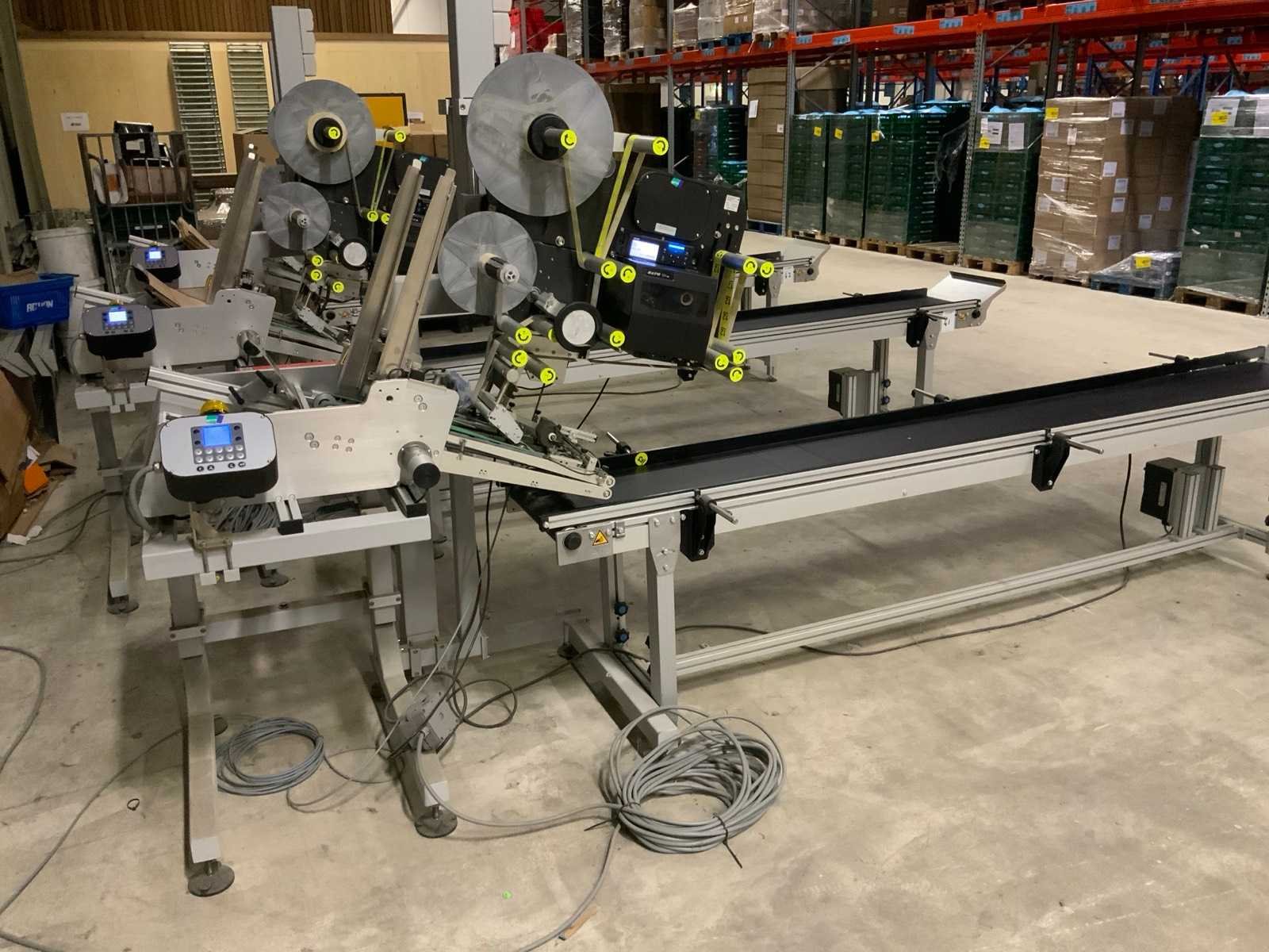 Voorzien van 1 Kraus Joker feeder, min. formaat: 100 x 30 / max. 350 x 320 mm, 1 Sato S84 EX thermische printer, en BCK HOLLAND afvoertransportband, type: N60, afmeting band: L3050 x B400 mm, met Teco E510 frequentie regelaar, verstelbare kantgeleiders, noodstop beveiliging, motor vermogen: 0,37 KW Merk: ARCA Labeling & Marking Type: Evolution 160 Bouwjaar: 2022 Serienummer: 07-6603-E160 Max. rolbreedte: 160mm Digitale uitlezing: true Aansluiting: 230V Totale afmeting L: 4200mm Totale afmeting Breedte: 1100mm Totale afmeting Hoogte: 2100mm