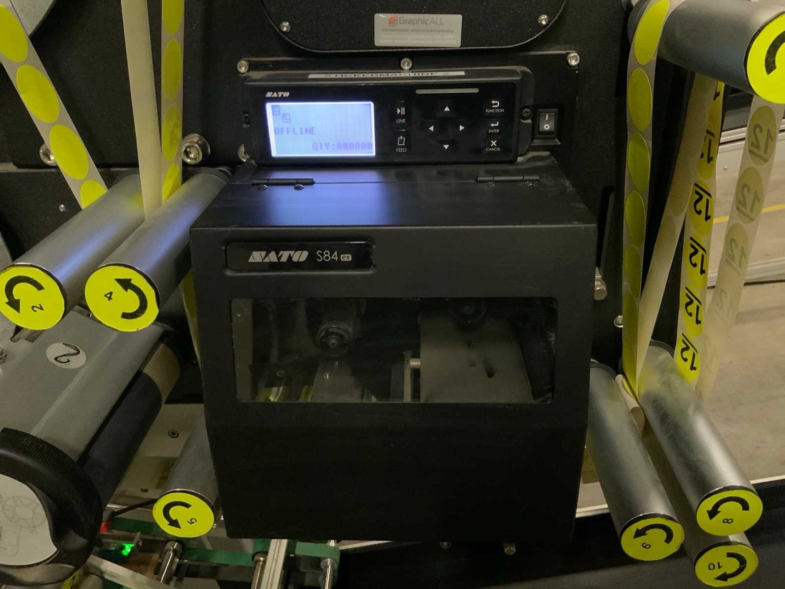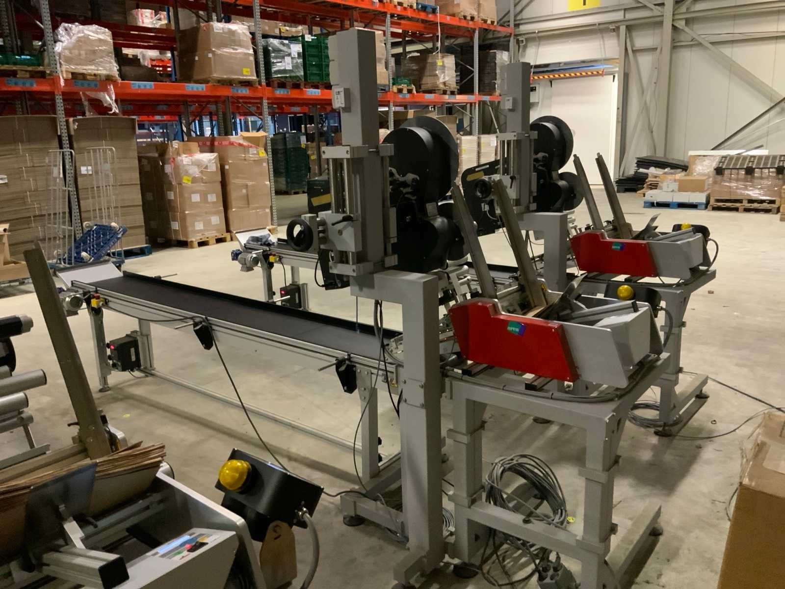 Voorzien van 1 Kraus Joker feeder, min. formaat: 100 x 30 / max. 350 x 320 mm, 1 Sato S84 EX thermische printer, en BCK HOLLAND afvoertransportband, type: N60, afmeting band: L3050 x B400 mm, met Teco E510 frequentie regelaar, verstelbare kantgeleiders, noodstop beveiliging, motor vermogen: 0,37 KW Merk: ARCA Labeling & Marking Type: Evolution 160 Bouwjaar: 2022 Serienummer: 07-6604-E160 Max. rolbreedte: 160mm Digitale uitlezing: true Aansluiting: 230V Totale afmeting L: 4200mm Totale afmeting Breedte: 1100mm Totale afmeting Hoogte: 2100mm