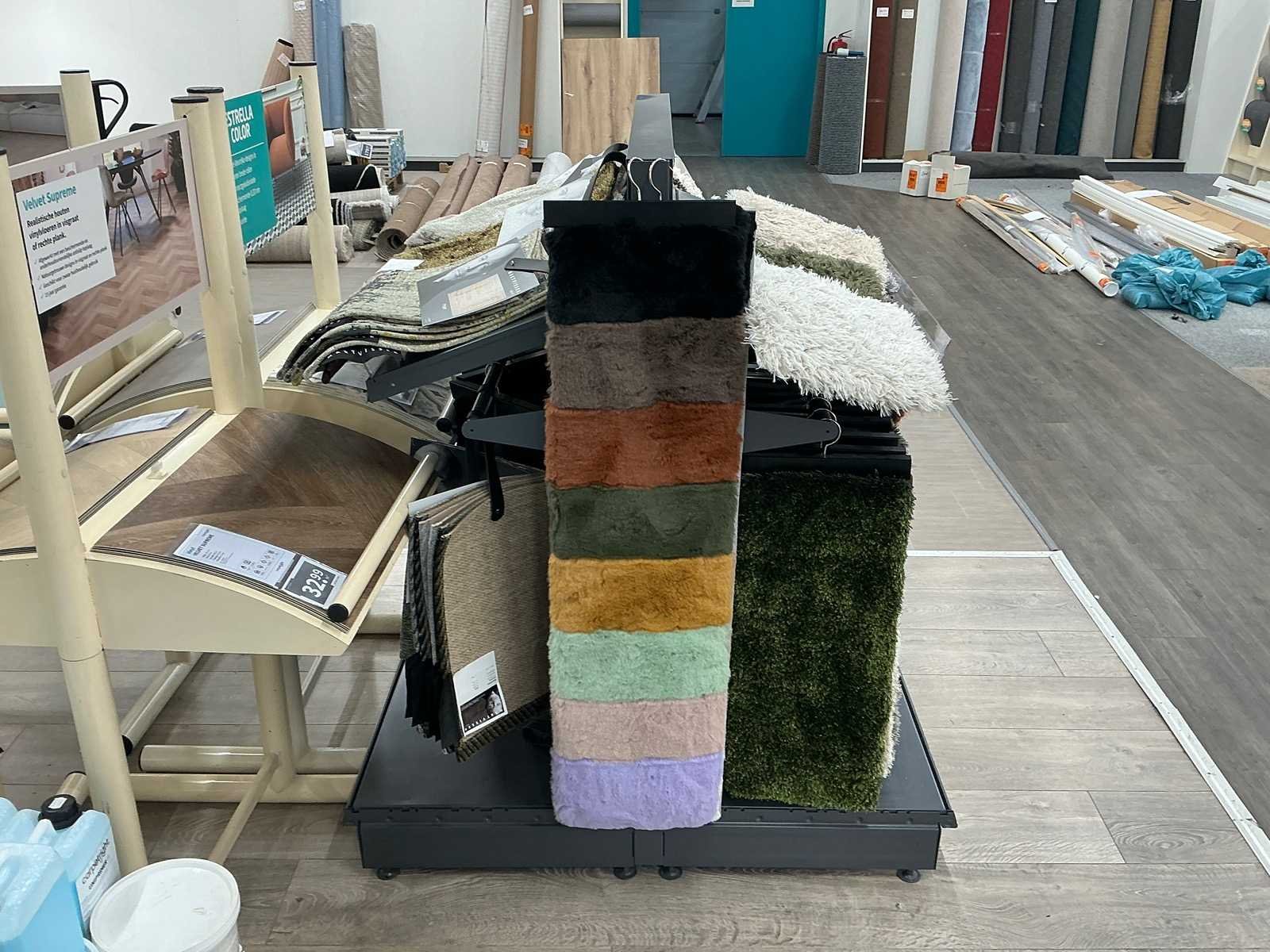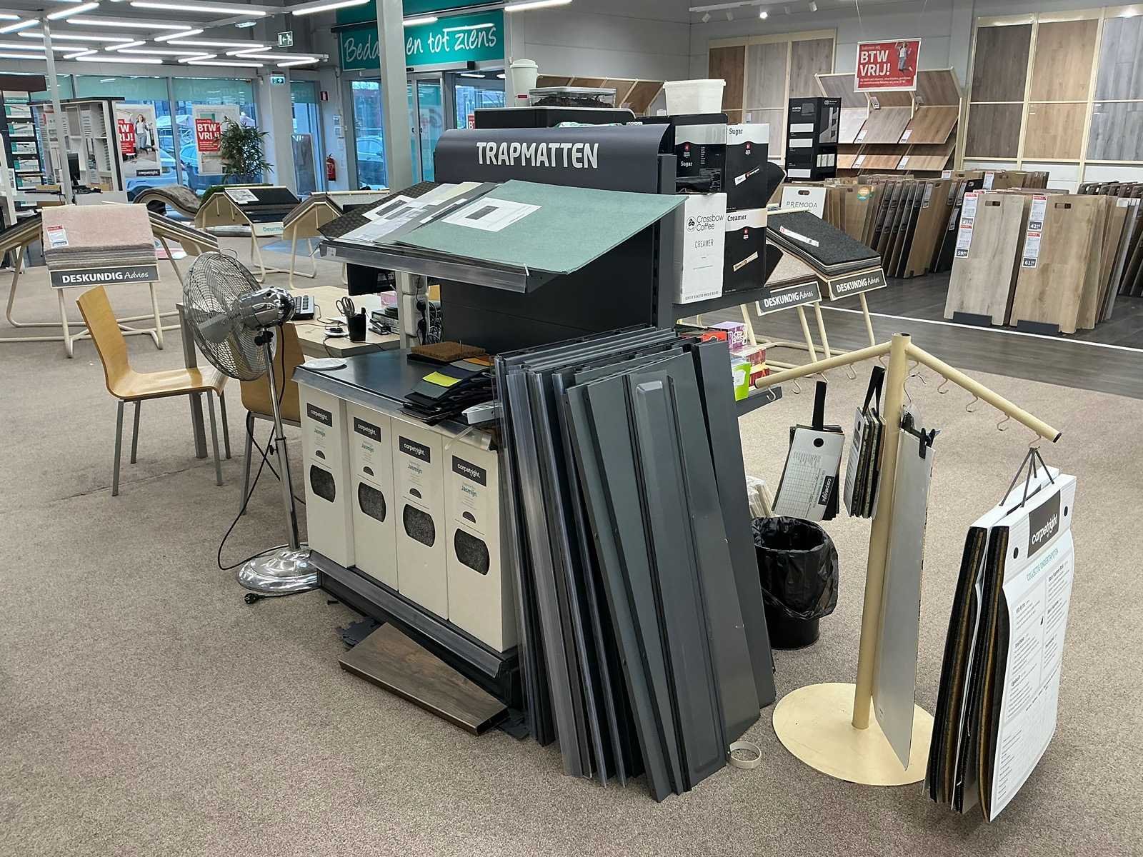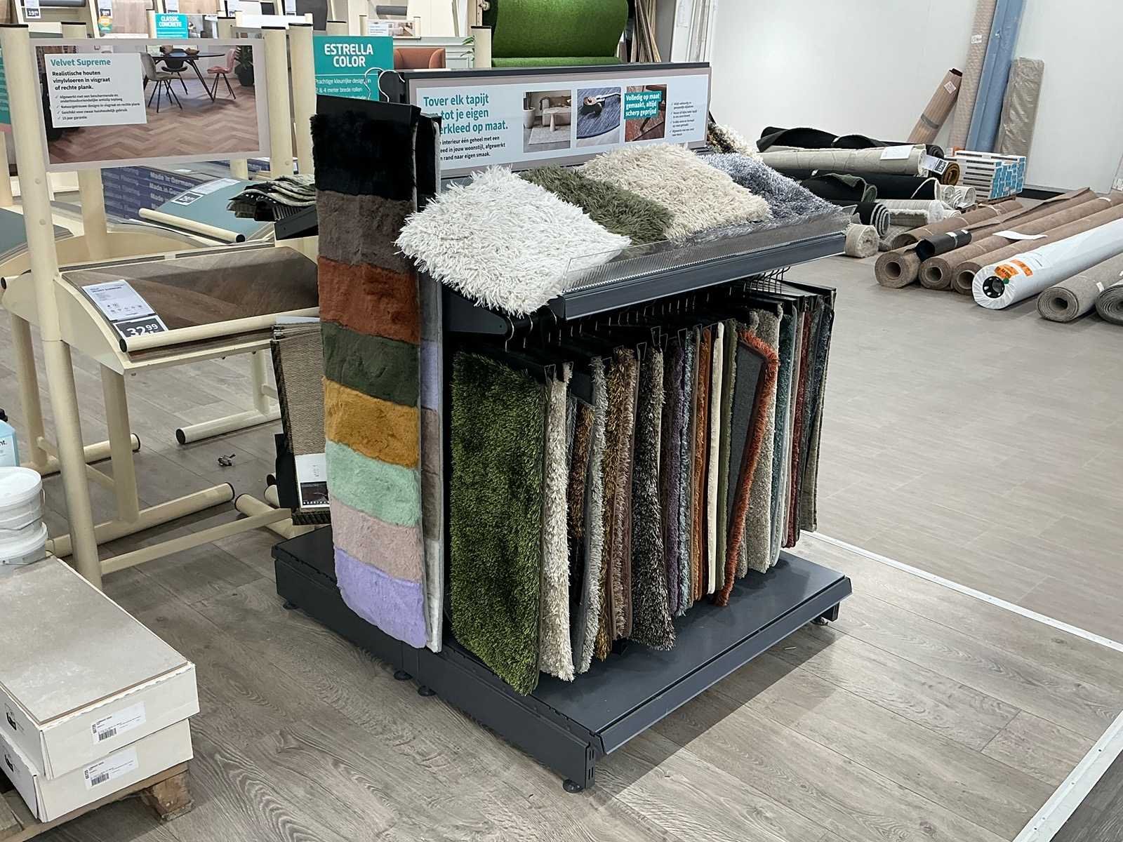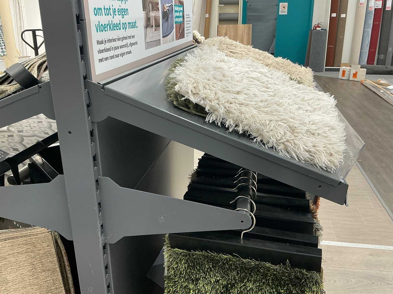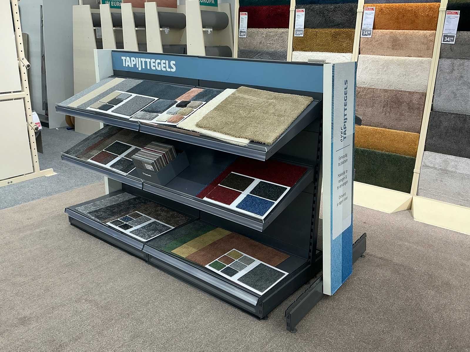 Dit kavel dient door de koper professioneel gedemonteerd te worden. De stellingen zijn gemaakt van datec onderdelen. Stellingen zijn 320x60x245, 104x125x144 en 200x125x144 cm Exclusief inhoud. Inclusief stofstalen
