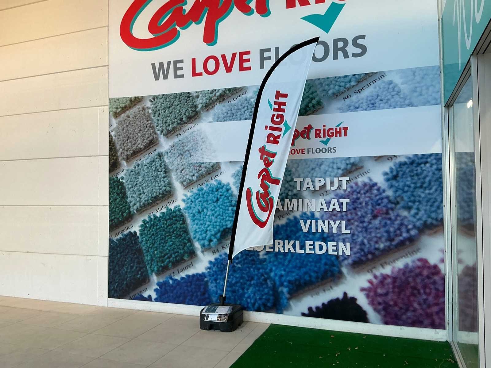 Stoepbord is 95x60x150 cm Vlaggen zijn 60x310 cm