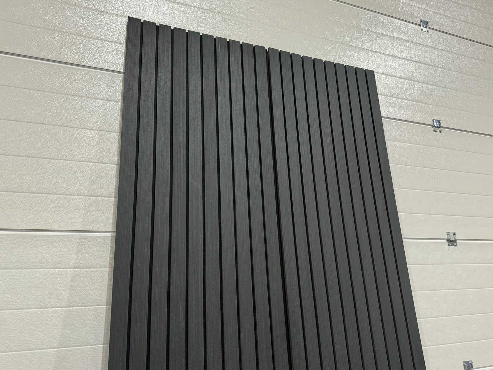 Brede planken van 50mm; tussenruimte tussen de planken is 10mm Kleur: Zwart Lengte: 280cm Breedte: 60cm