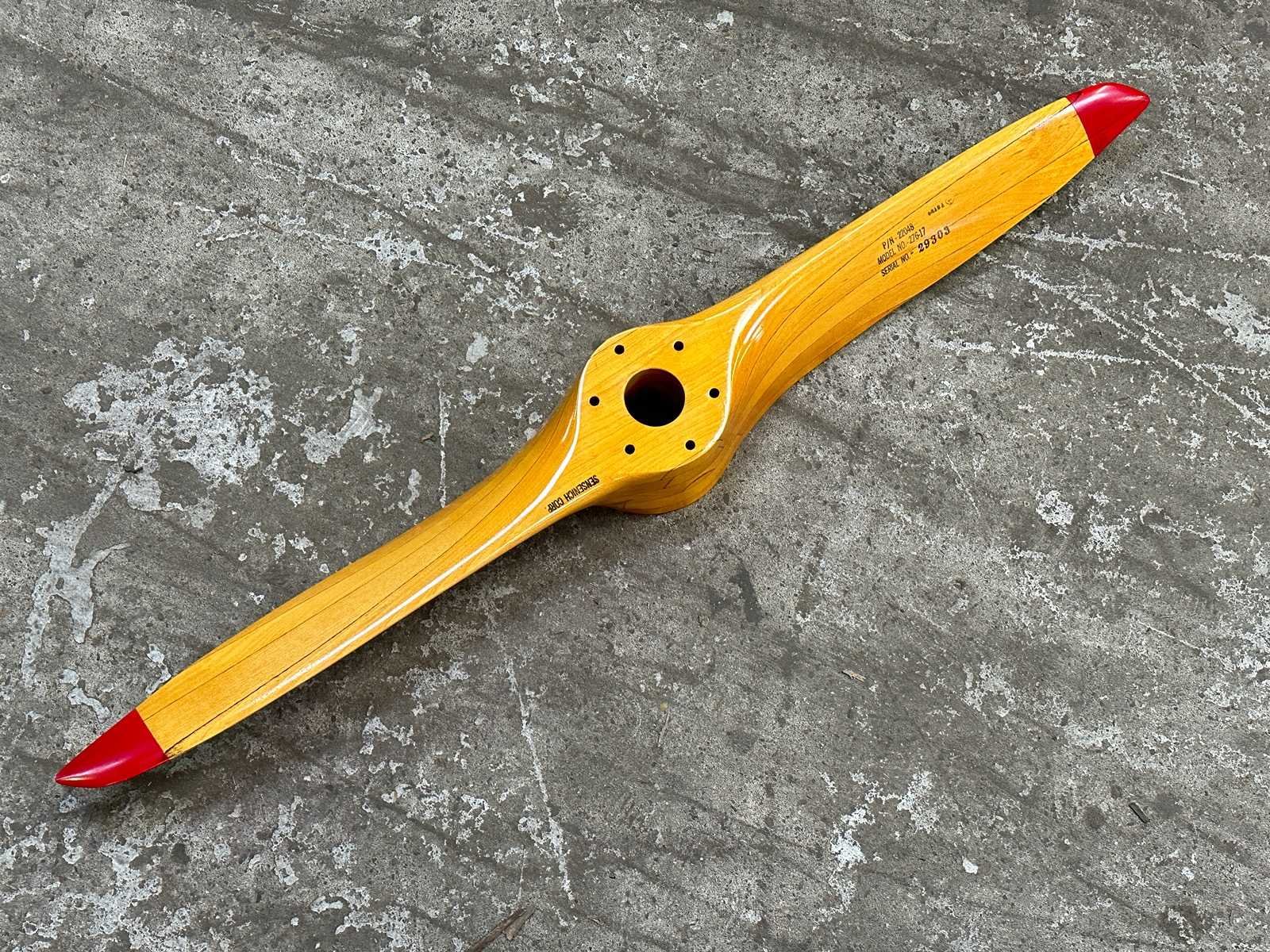 Deze ongebruikte propeller is gemaakt voor een onbemand vliegtuig, Doone U.S. P/N 22048 model no. 276-17. Dit exemplaar is ongebruikt en volledig in takt. Totale afmeting Breedte: 1100mm
