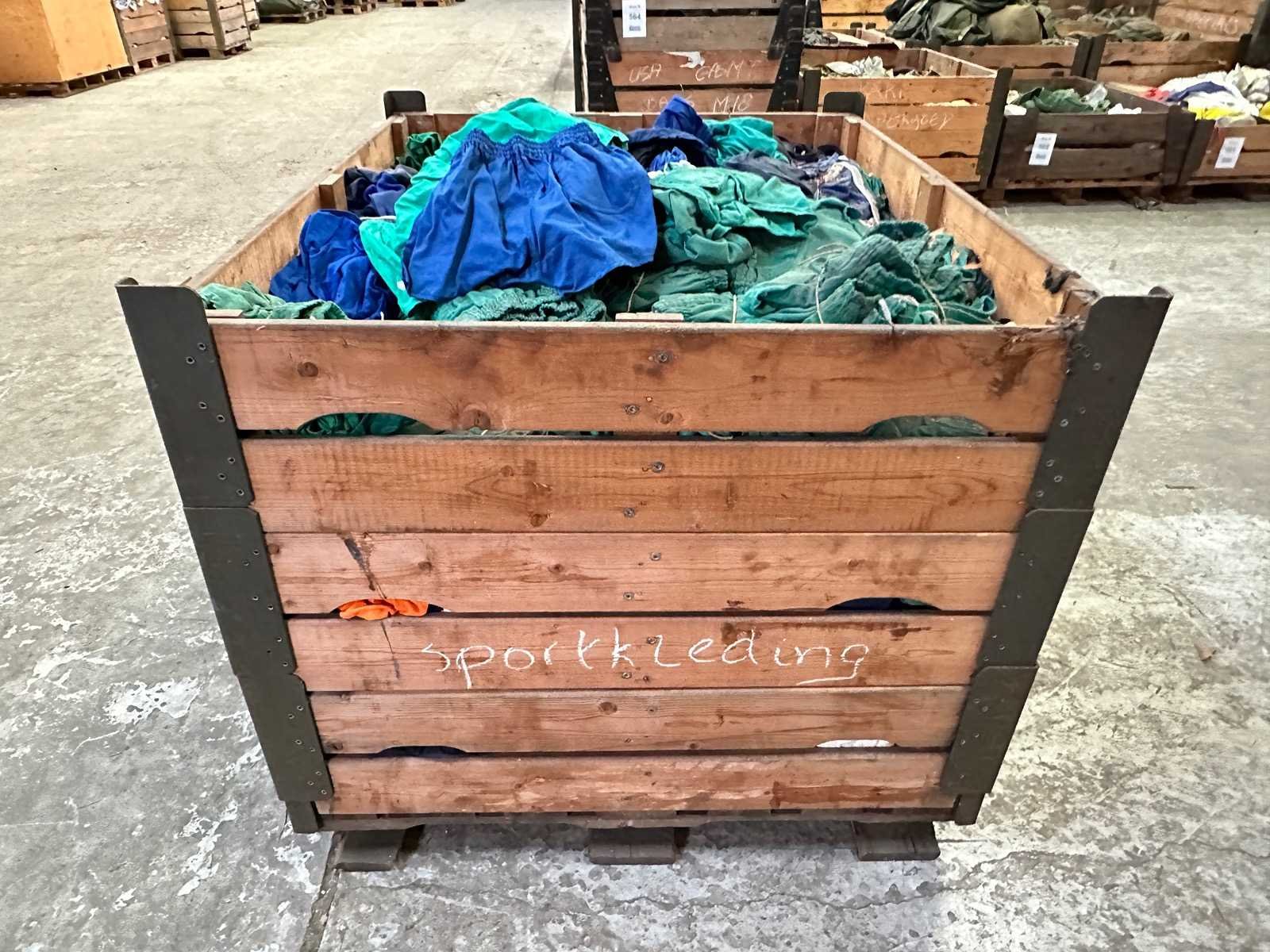 Deze partij bestaat uit sportkleding van defensie in diverse kleuren en kledingmaten.