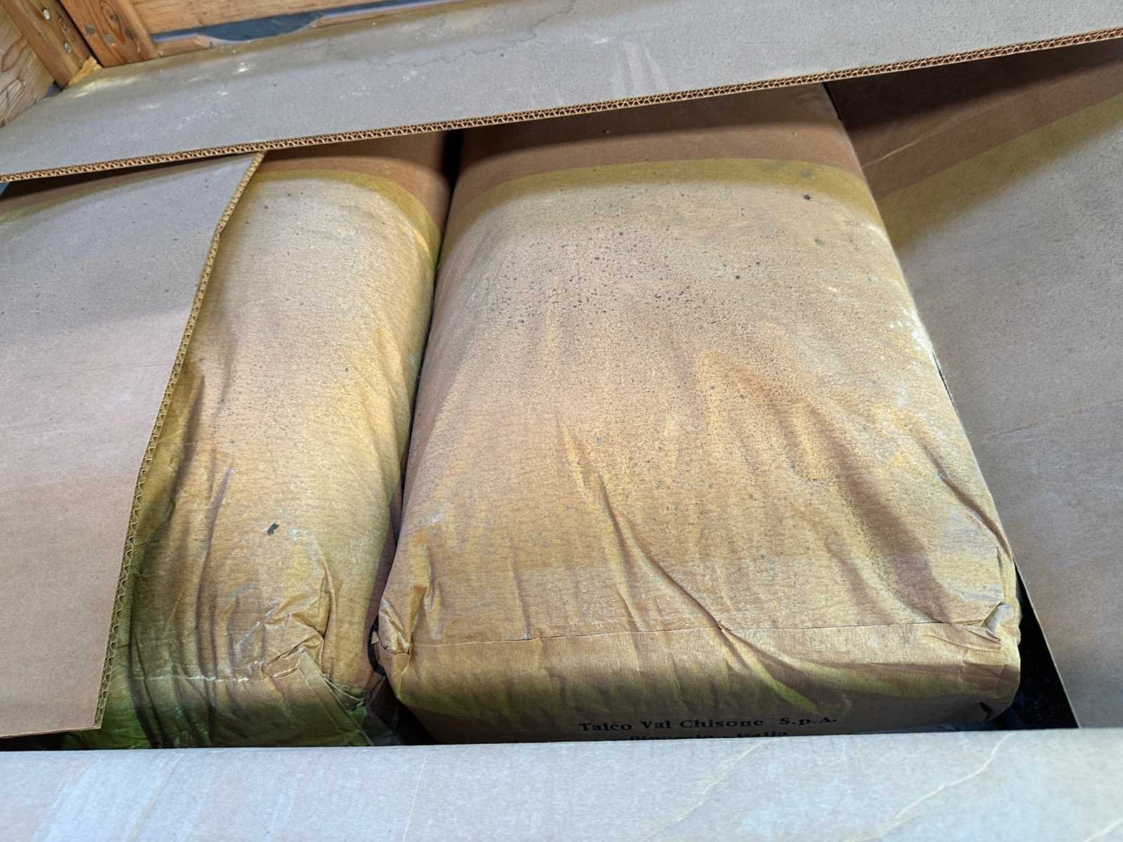 Deze partij bestaat uit gesloten zakken talkpoeder van 50 Kg