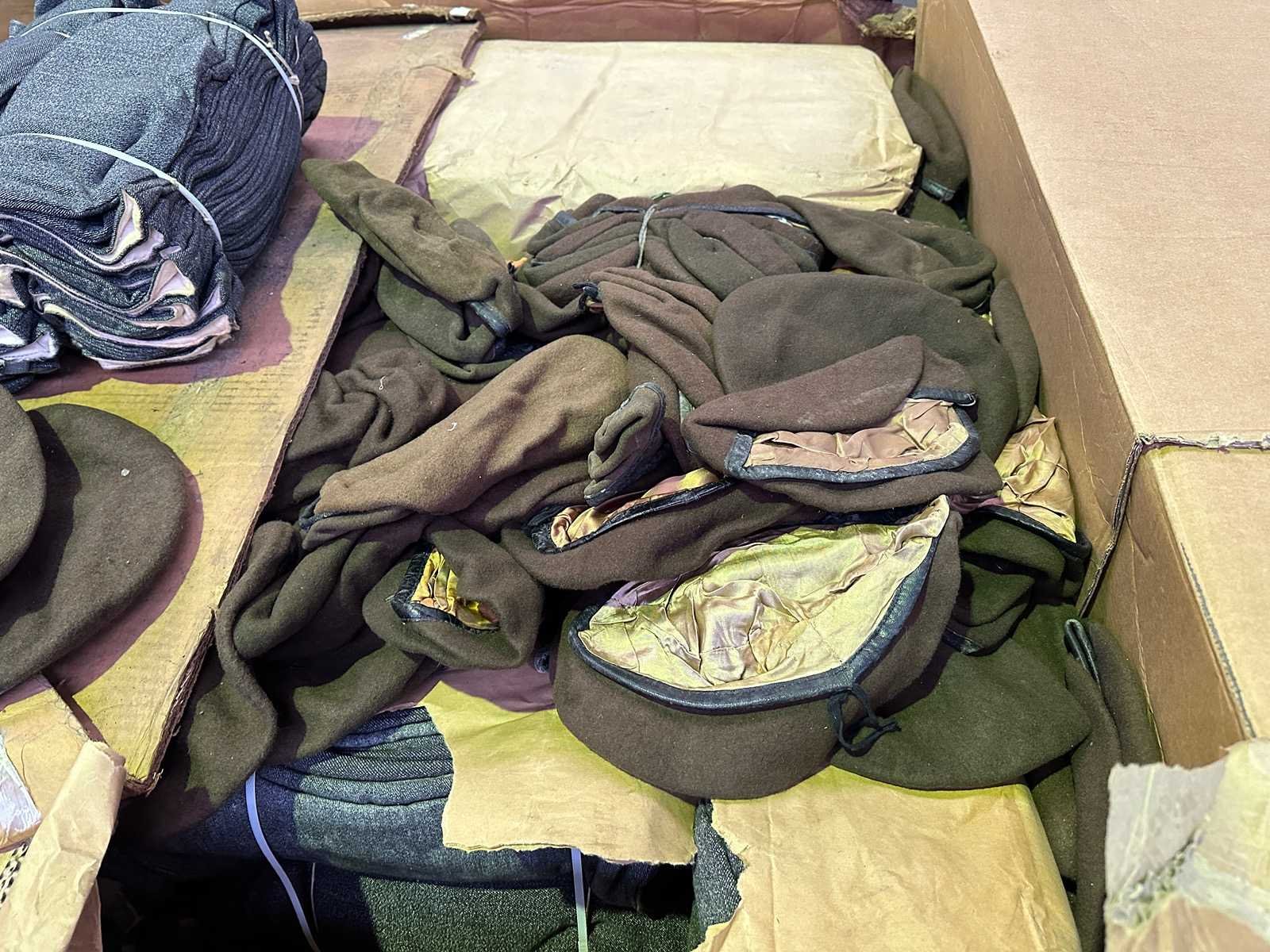 Deze partij bestaat uit ongebruikte wanten en diverse baretten zonder embleem