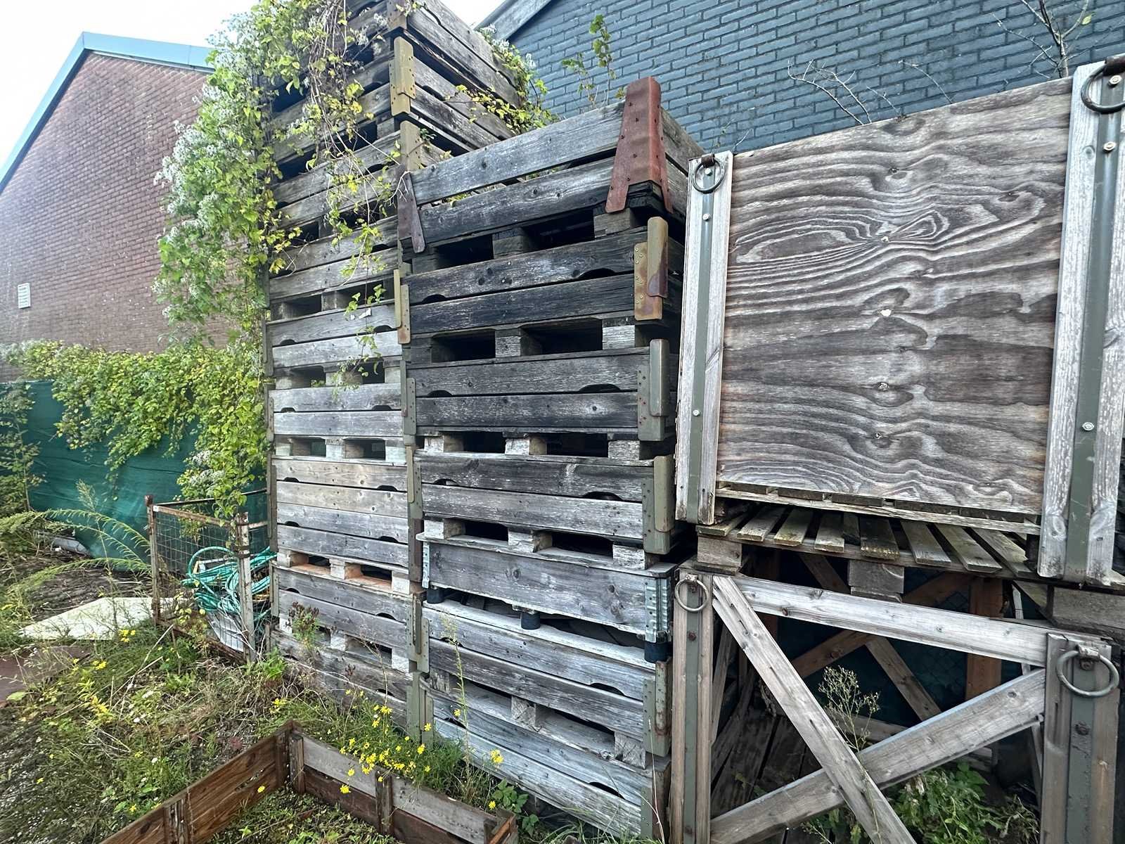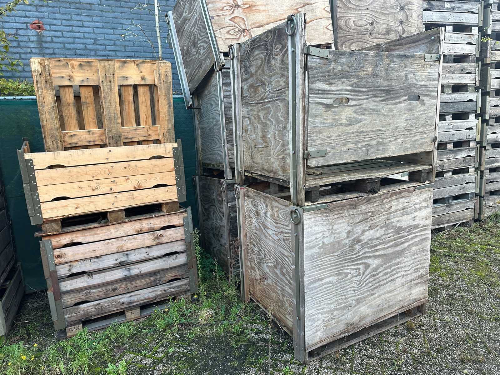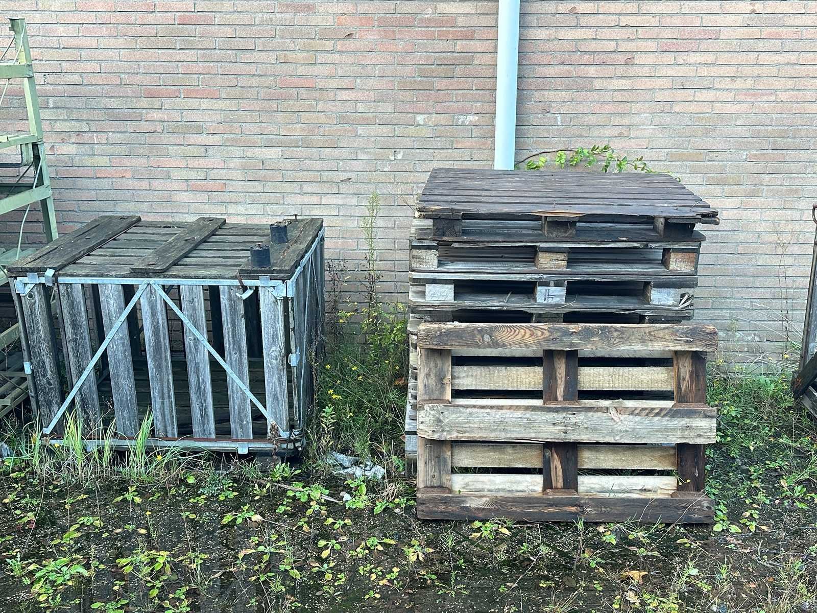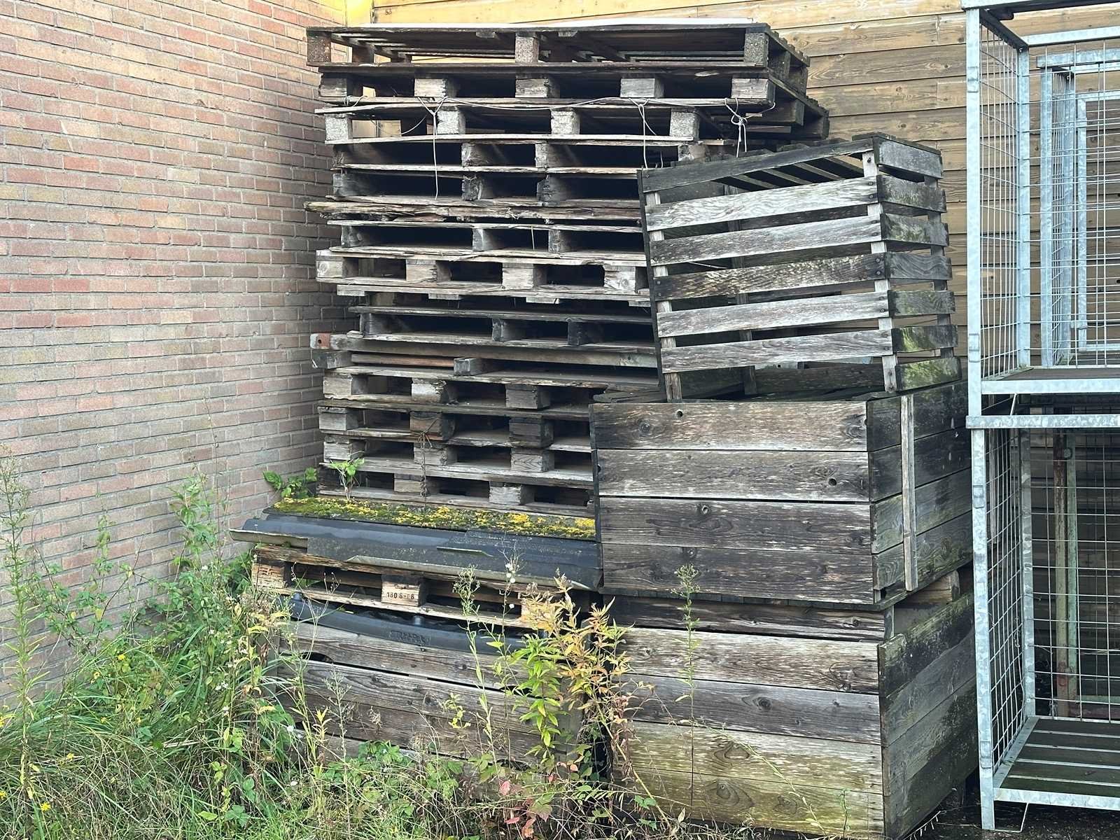 Partij diversen, pallets en palletboxen op het buitenterrein