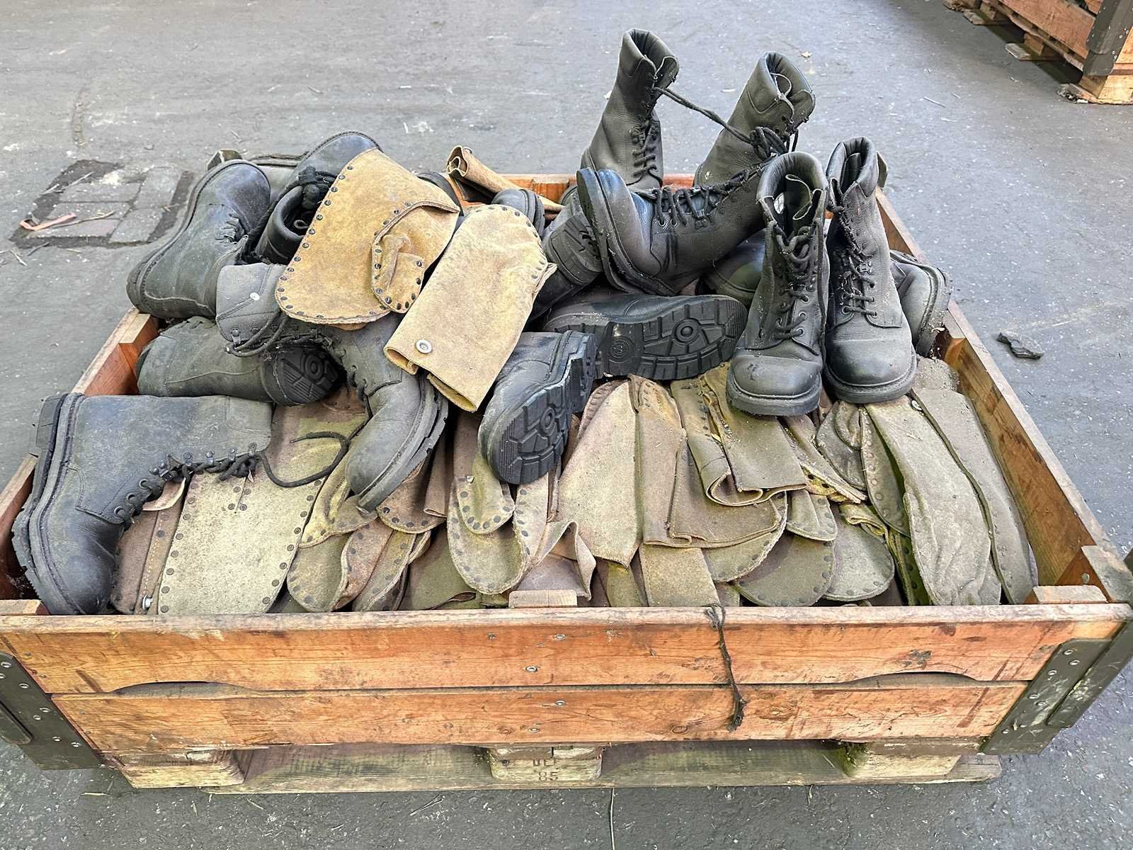 Deze partij bestaat uit canvas beenkappen en een 7 paar zwarte legerkisten.