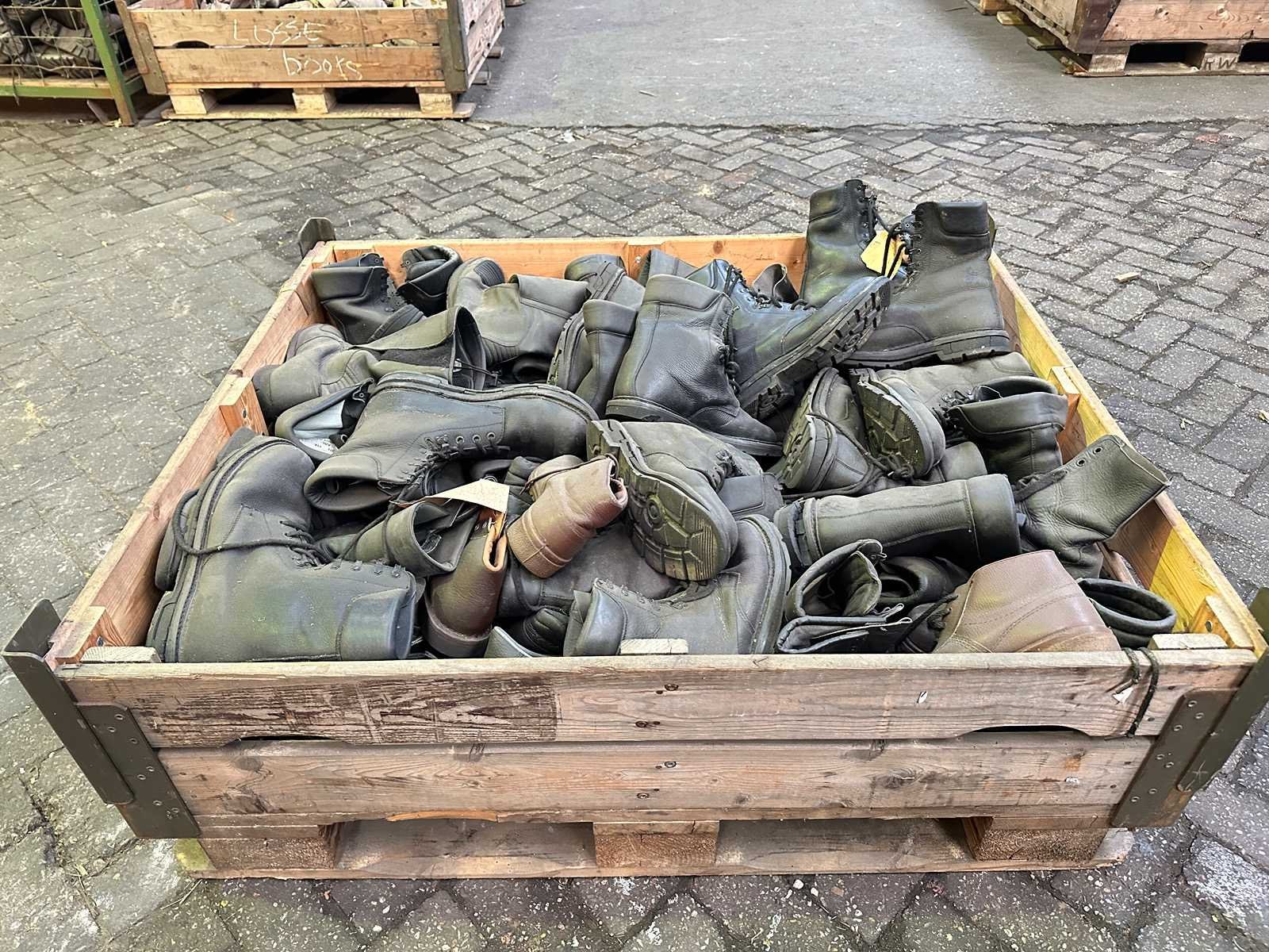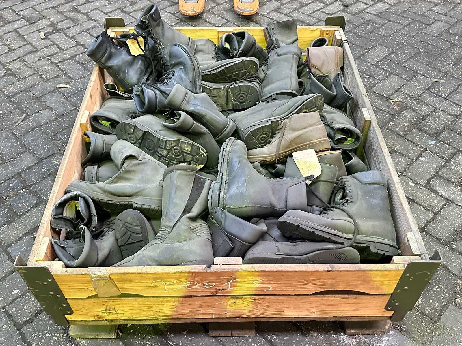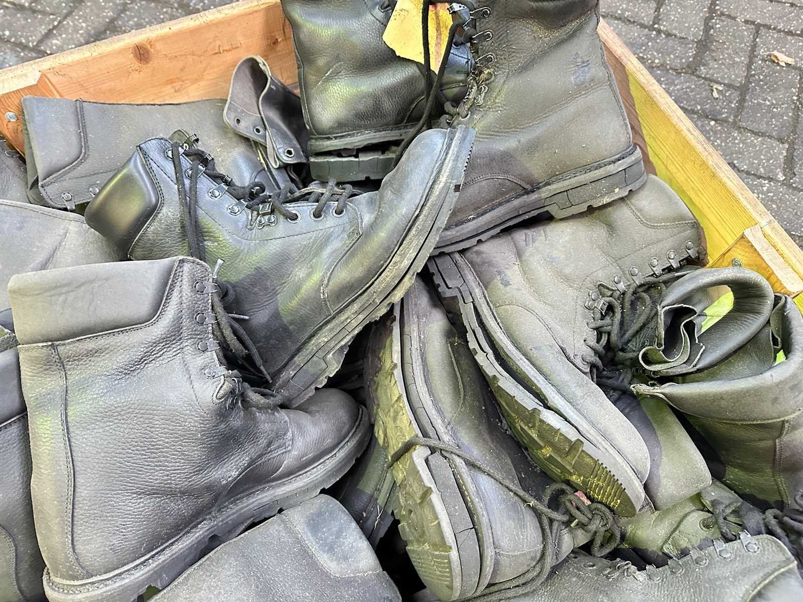 Deze partij bestaat uit diverse legerkisten in verschillende maten. Groot aantal met losse zolen.