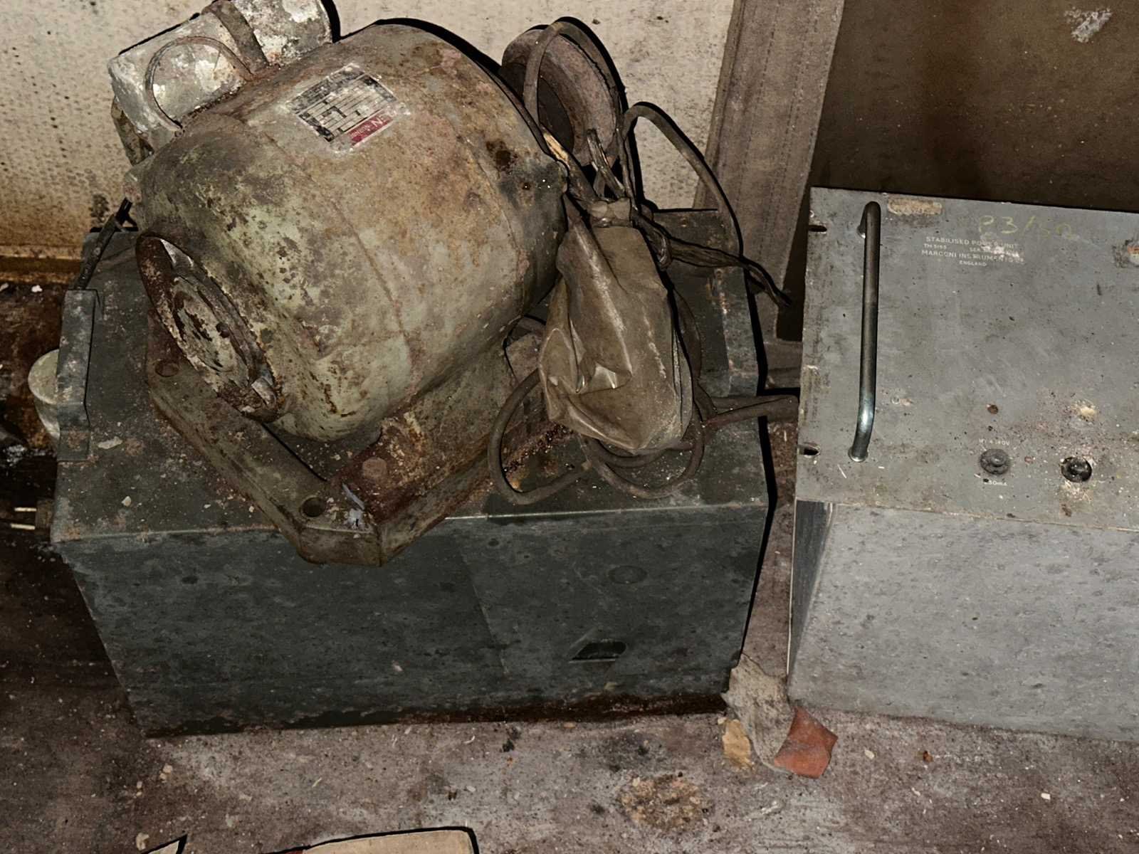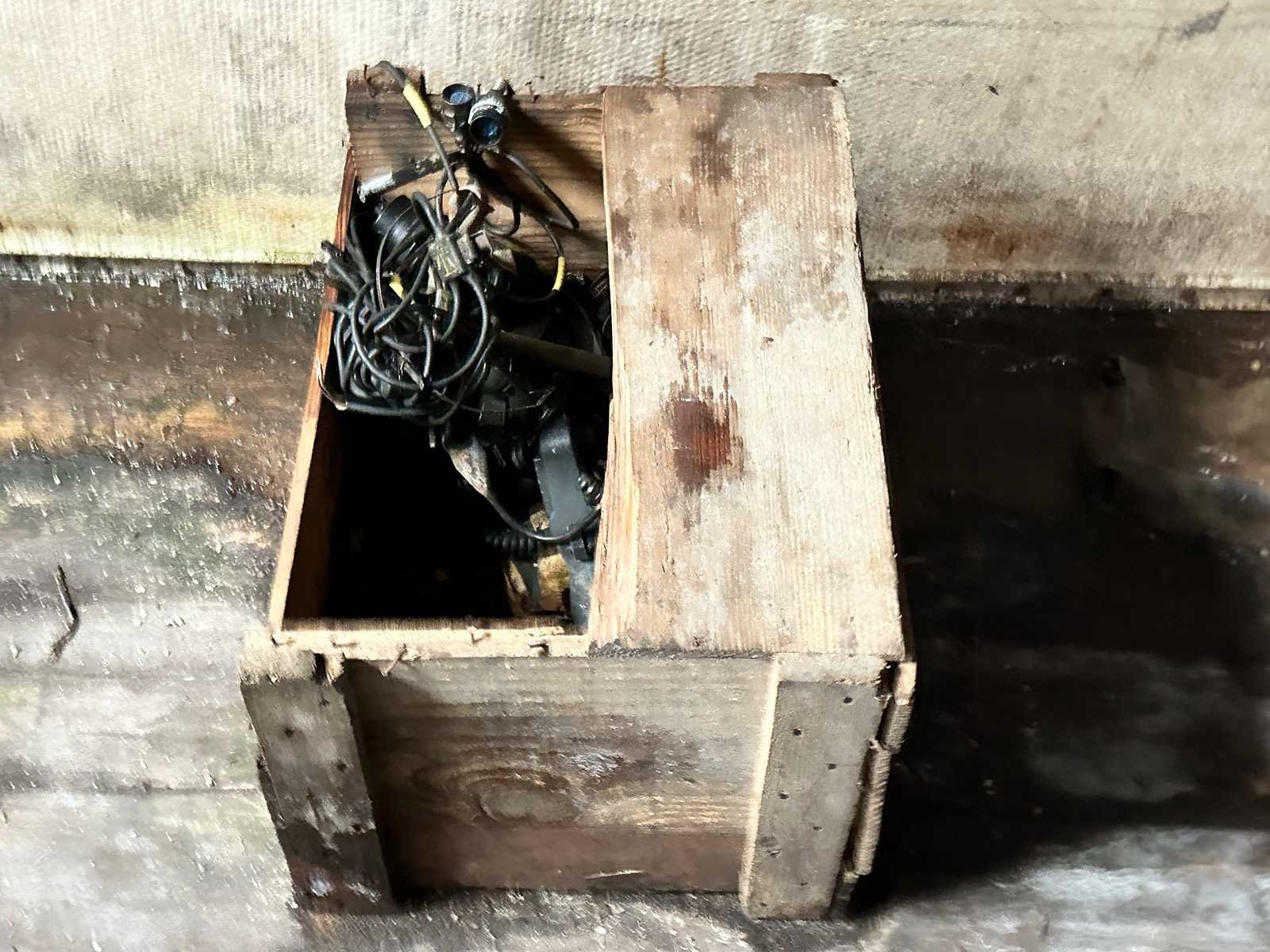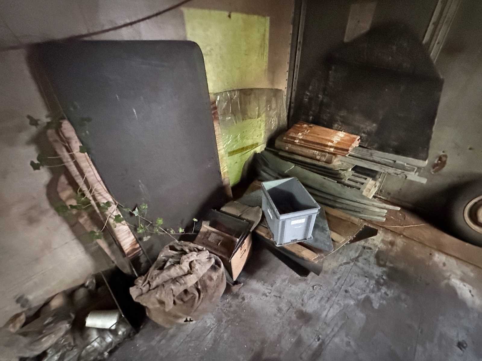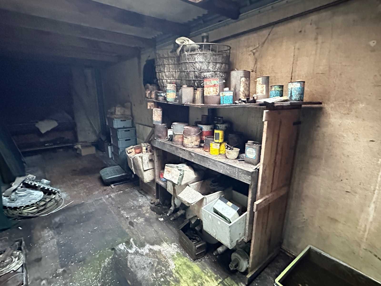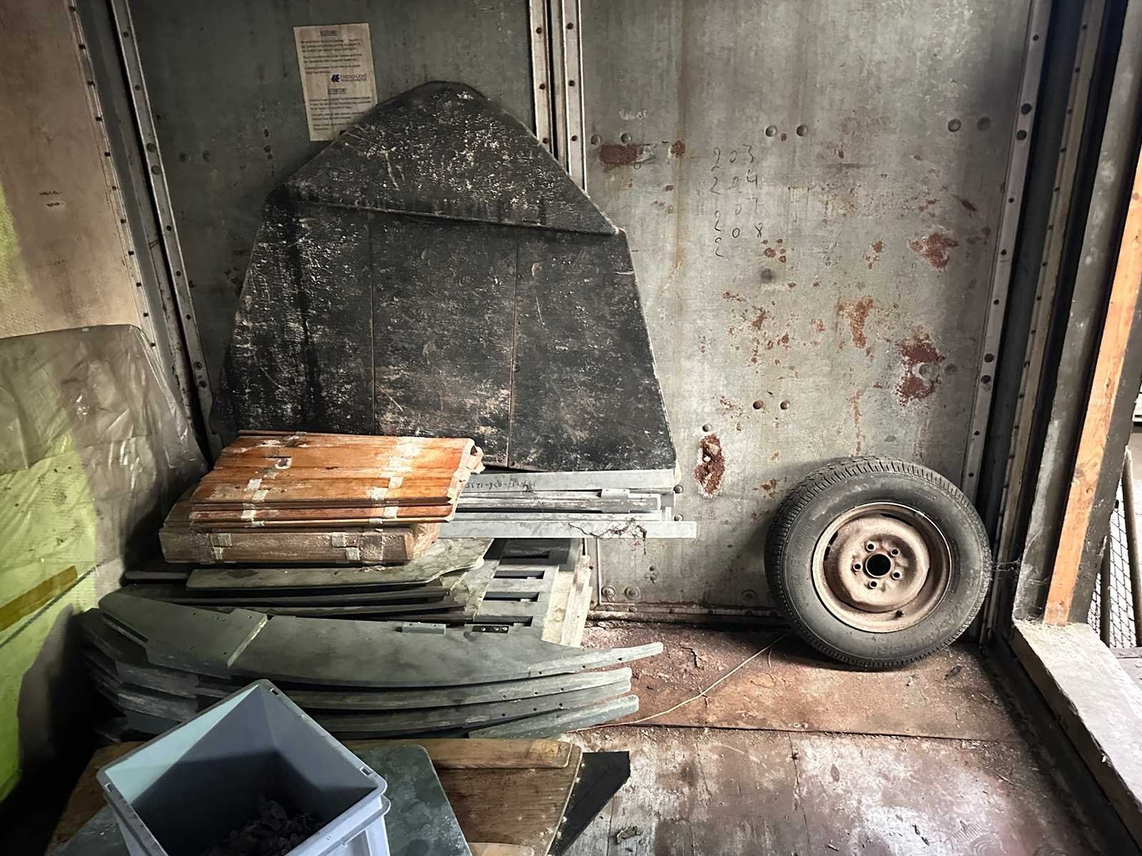 Deze inhoud bestaat onder andere uit onderdelen legervoertuigen, Marconi onderdelen, autoband en wandstelling met inhoud.