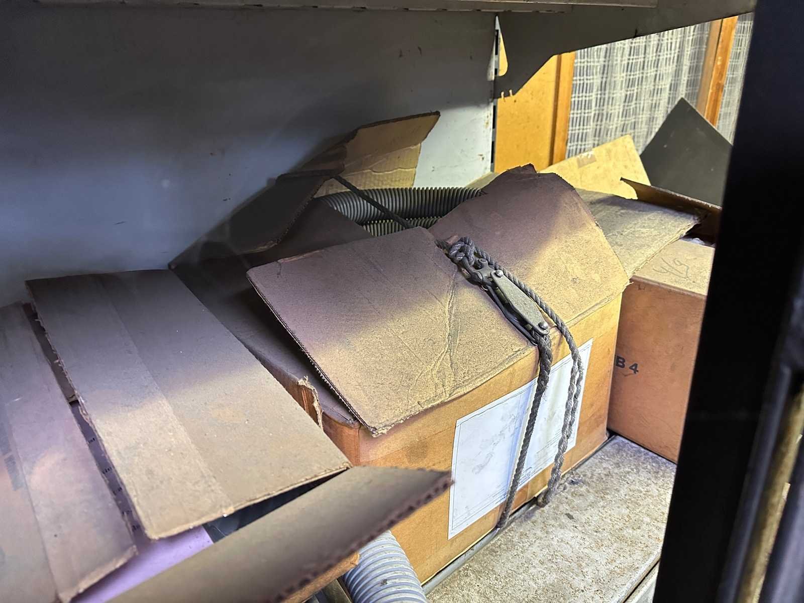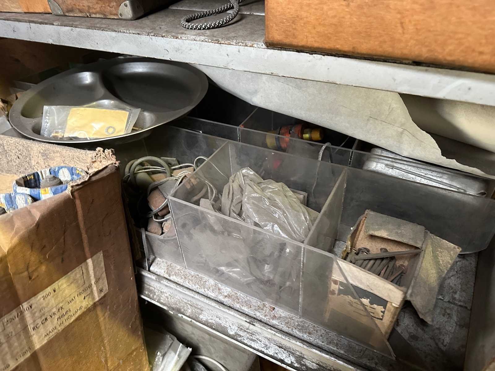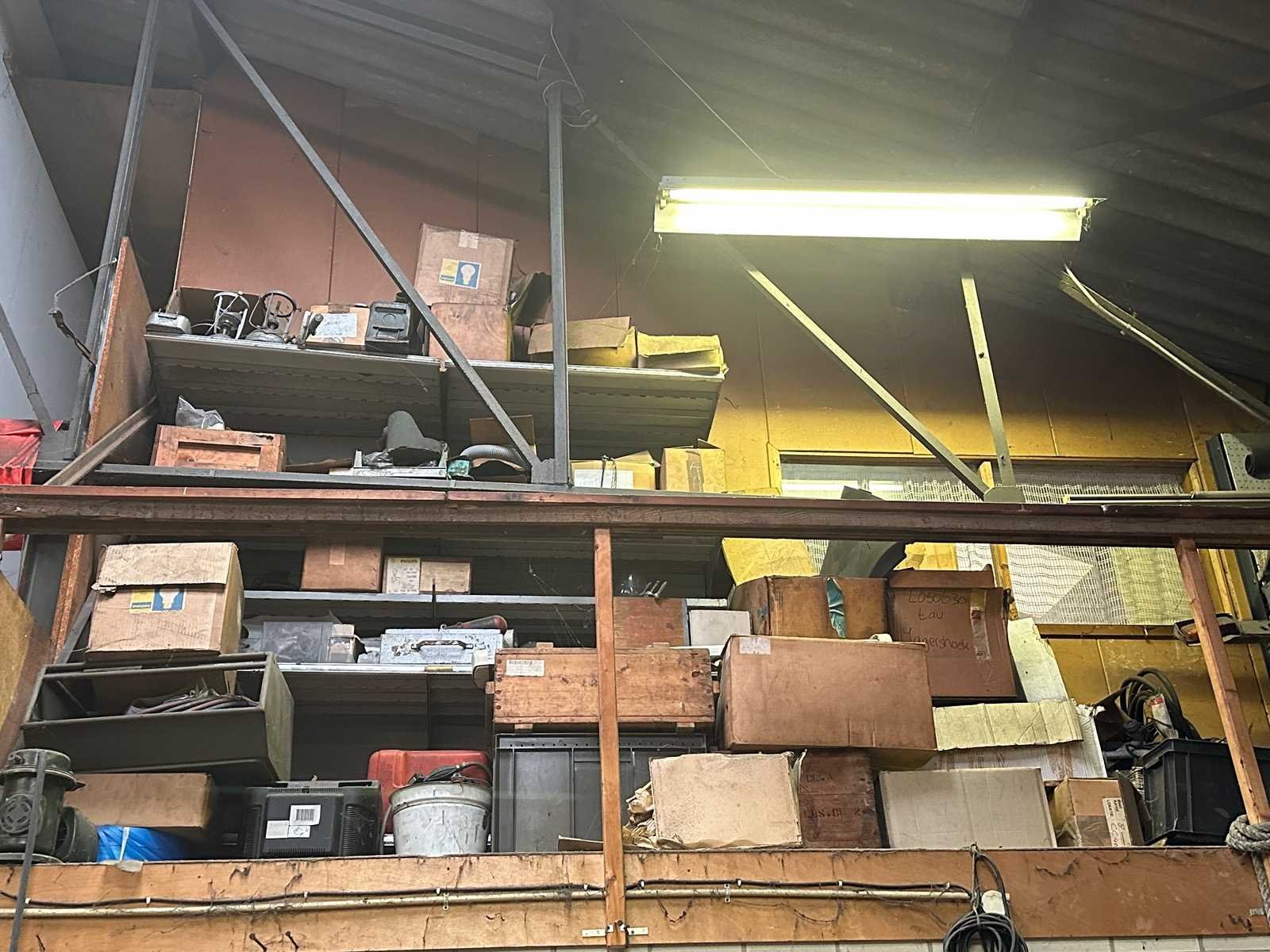 Dit kavel bestaat uit de zaken op de vliering zoals zichtbaar op de foto. De inhoud bestaat onder andere uit luchtpomp, gloeilampen, omsnoeringsband, petroleumlampen, vintage blusmaterialen en overige curiosa.