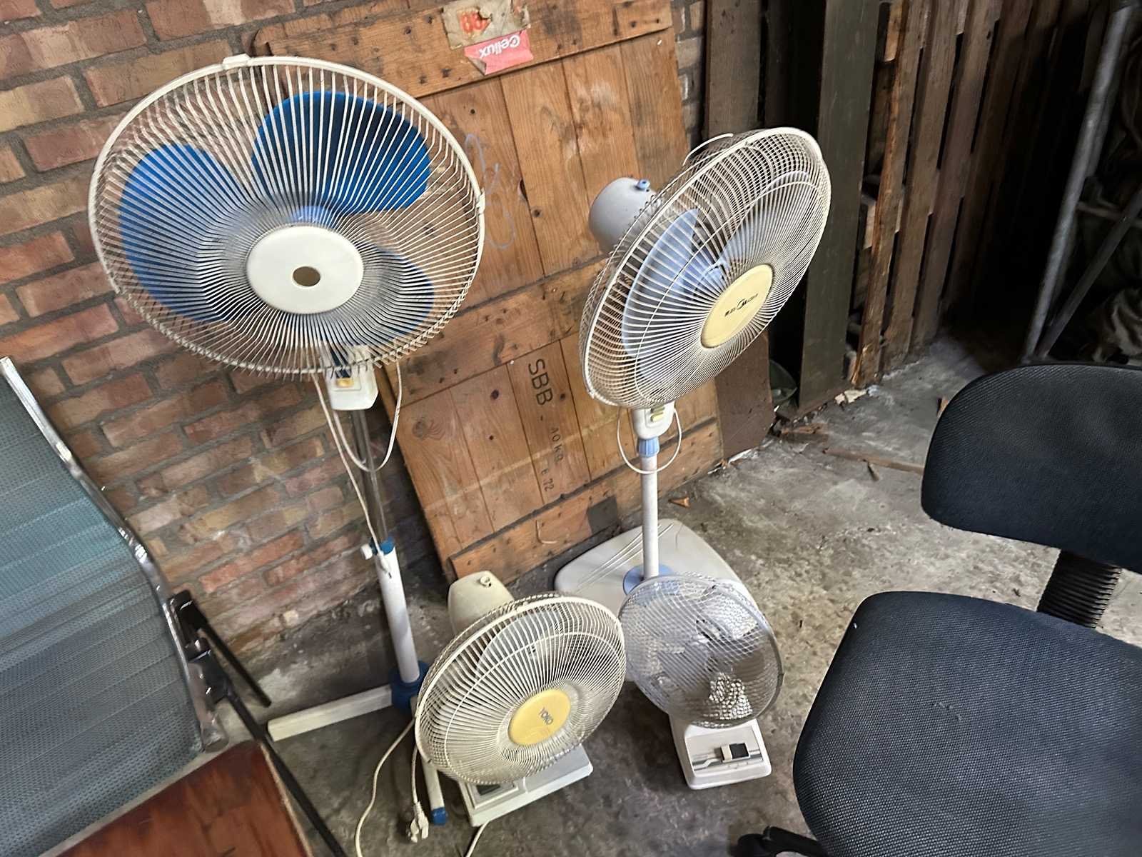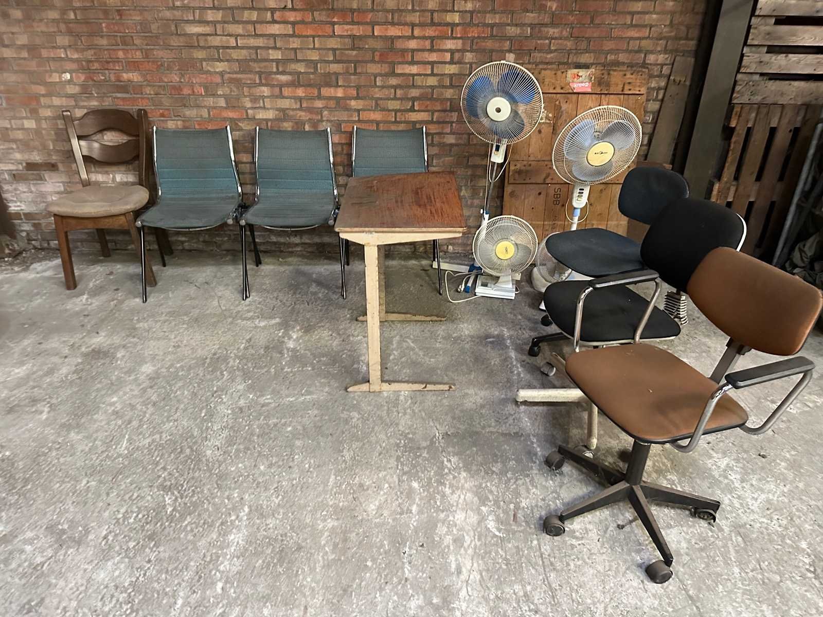 Deze partij bestaat uit 7 stoelen, een schoolbank en 4 ventilatoren,
