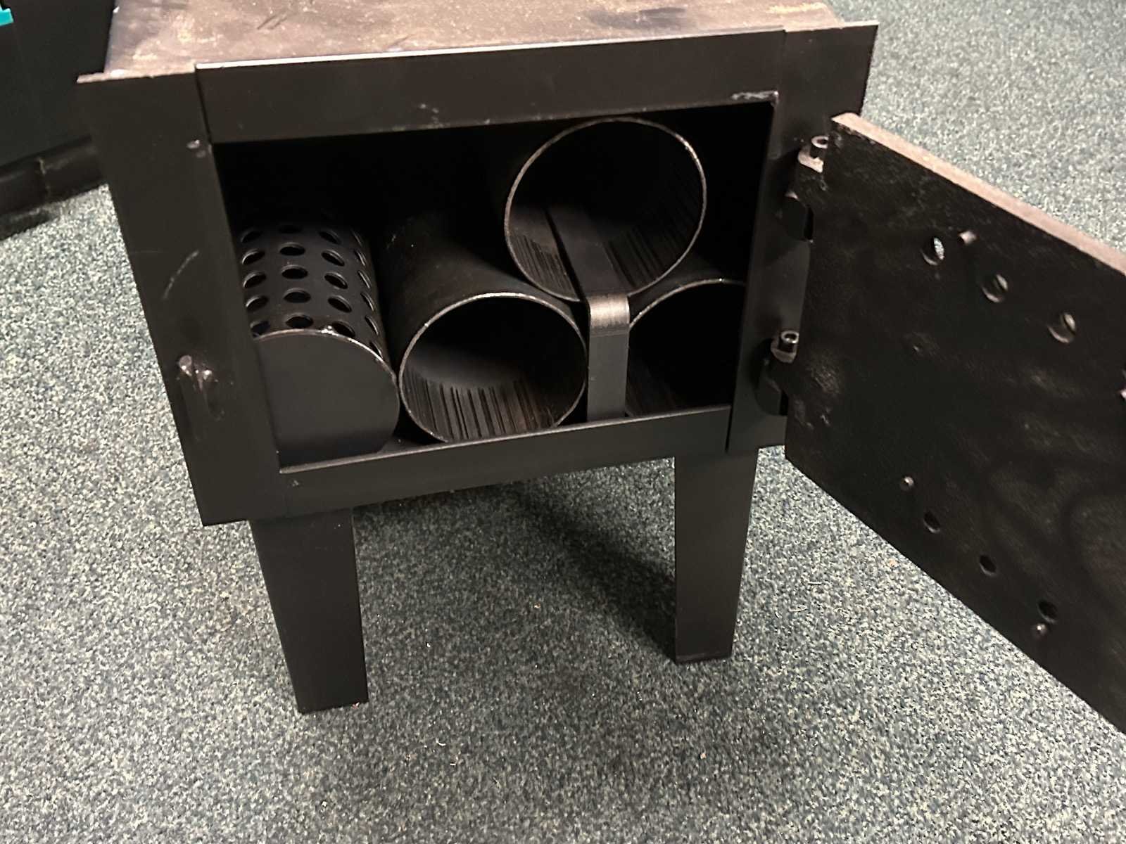 Wildo houtkachel incl. 3 pijpen, vonkenvanger en pook Totale afmeting L: 290mm Totale afmeting Breedte: 450mm Totale afmeting Hoogte: 400mm