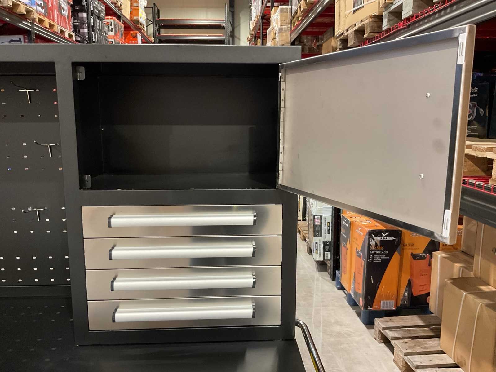 Voorzien van Gepoedercoat staal; 18 lades 4 kastdeuren; Sleutels voor afsluiten; Ongebruikt Merk: STAHLWORKS Type: 7-18-01C RVS / zilver handvat Bouwjaar: 2025