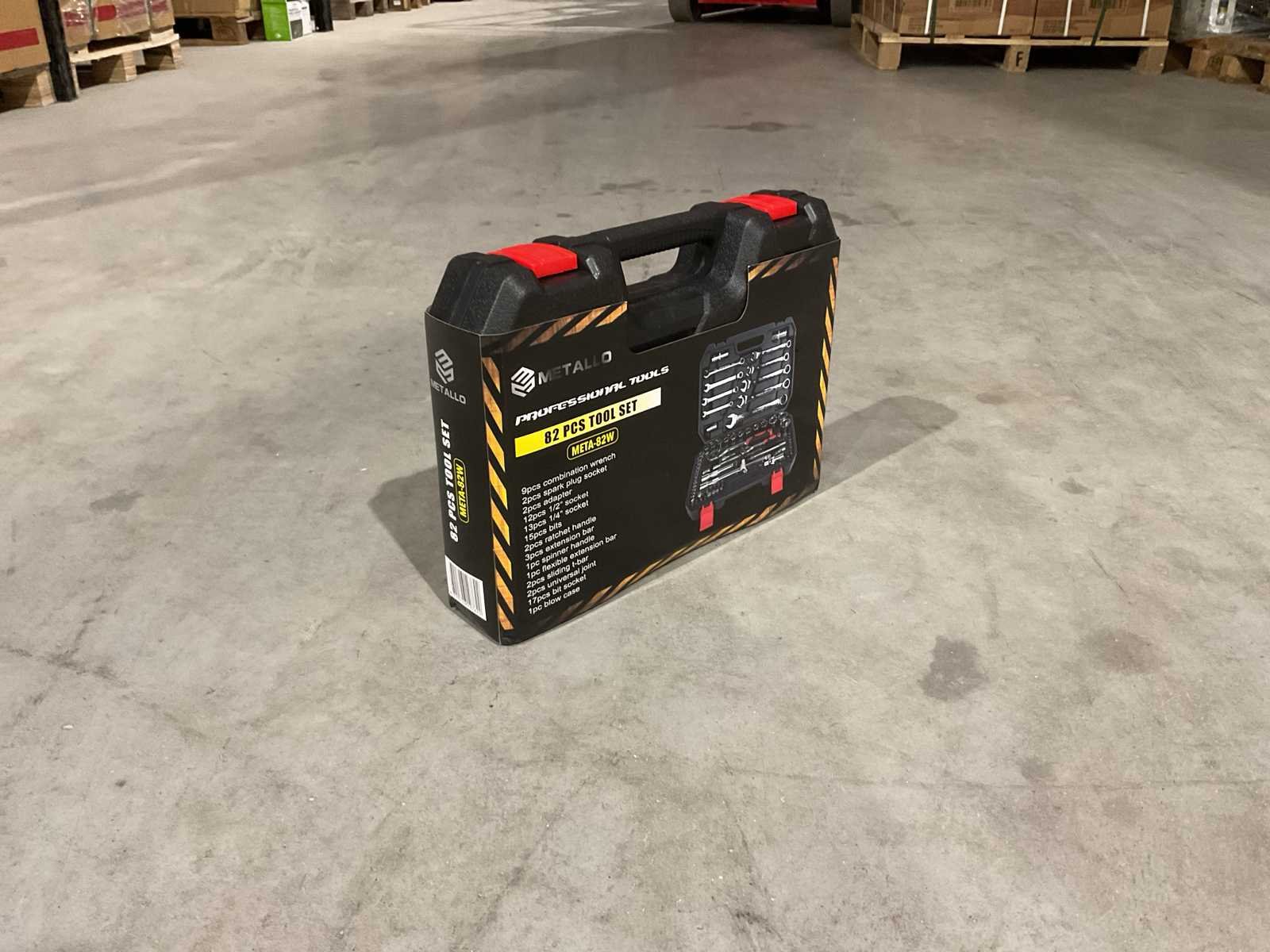 Voorzien van 9 x Ring/steeksleutel; 2 x Bougiesleutel; 2 x adapters; 12 x 1/2"Doppenset; 13 x 1/4" Doppenset; 15 x bitset; 2 x Ratelsleutel; 3 x verlengstukken; 1 x Spinner; 1 x Flexibele verlengstuk; 2 x Sliding T-Bar; 2 x Universele aansluiting; 17 x bitjes set; 1 x Kunststofkoffer; Ongebruikt in doos (Transport afmeting 385 x 80 x 290, Gewicht 5.75 KG Merk: Metallo Met koffer: true Delig: 82 Type: META-82W Bouwjaar: 2025