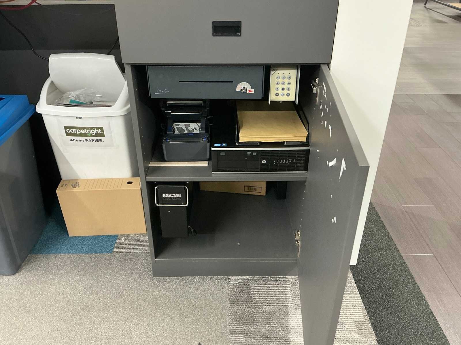 Dit kavel dient door de koper professioneel gedemonteerd te worden. Inclusief inhoud. Eventuele administratie en ICT horen niet bij het kavel. Exclusief printer. Totale afmeting L: 3000mm Totale afmeting Breedte: 800mm Totale afmeting Hoogte: 2800mm