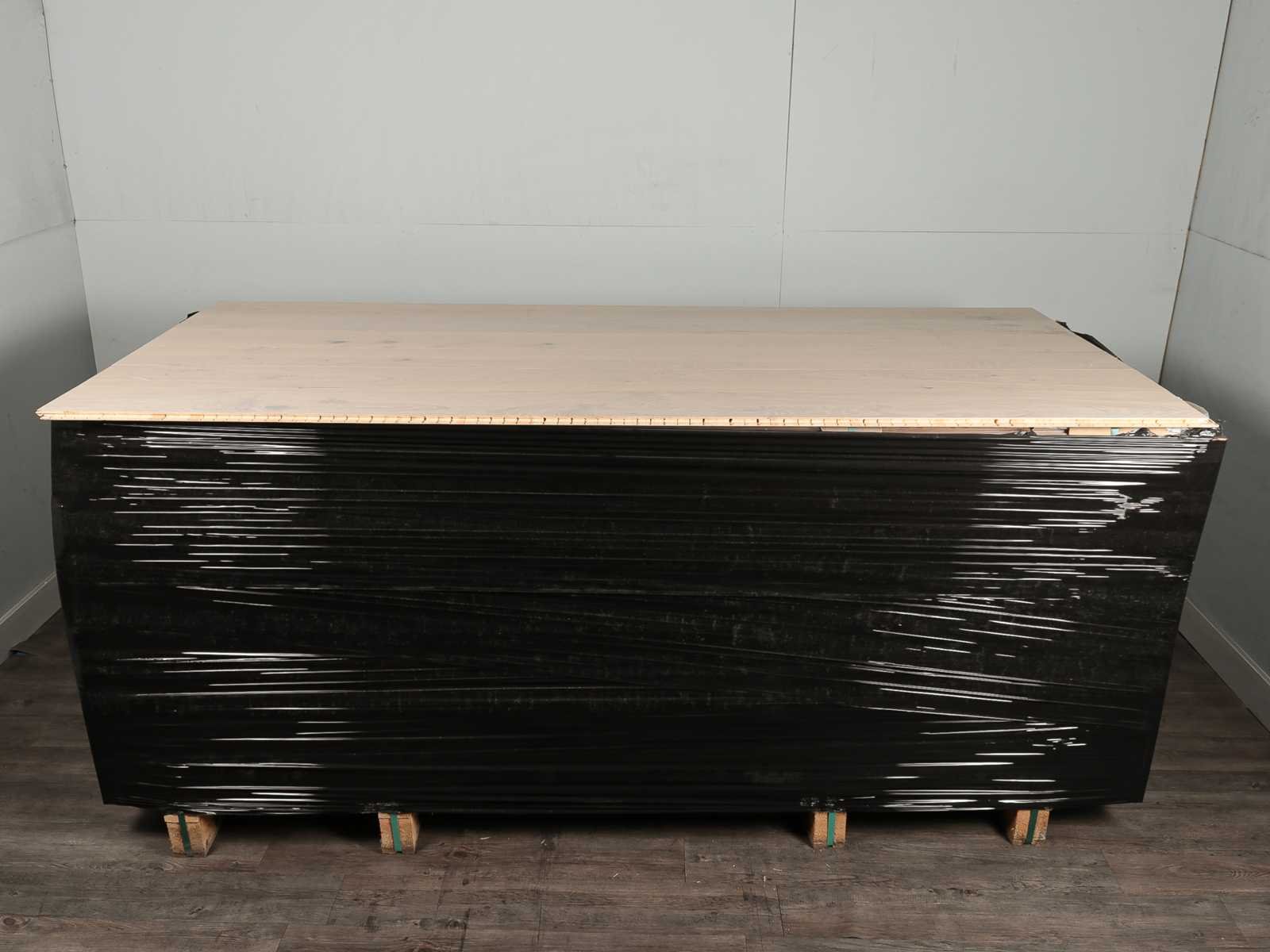 Gemakkelijk te leggen wegens clicksysteem, geschikt voor alle soorten vloer en koelverwarmingen, kwaliteits parketvloer, vloer is van hoogwaardig Europees eiken hout, kant en klaar behandeld, dikte 15 mm, toplaag 3 mm, 13 pakken a 2,72 m2 Within 14 days Merk: Ambiance Product type: Parket Oppervlakte: 35m² Geschikt voor vloerverwarming: Ja V-groef: Ja Afwerking: Mat gelakt, vlak afgewerkt, eiken toplaag, met v-groef Aantal m² per verpakking: 2.72m² Kleur: Oak rustic light 285 Gewicht: 300kg Lengte: 2420mm Breedte: 187mm Materiaal: Eiken multiplank