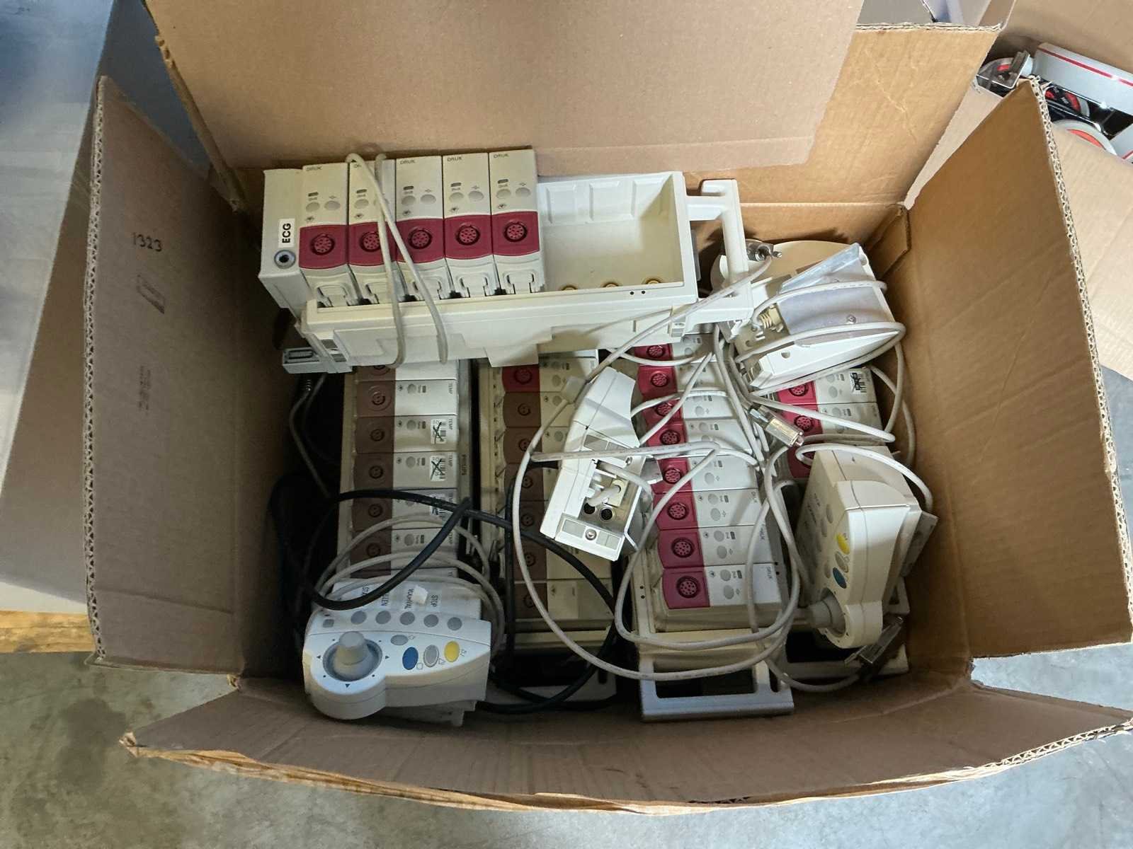 Bestaande uit een 3M Bear Hugger patiënt warmer, 3 dozen met bloeddrukmeters, 1 doos met Philips MP series module racks en Heamodynamische modules.