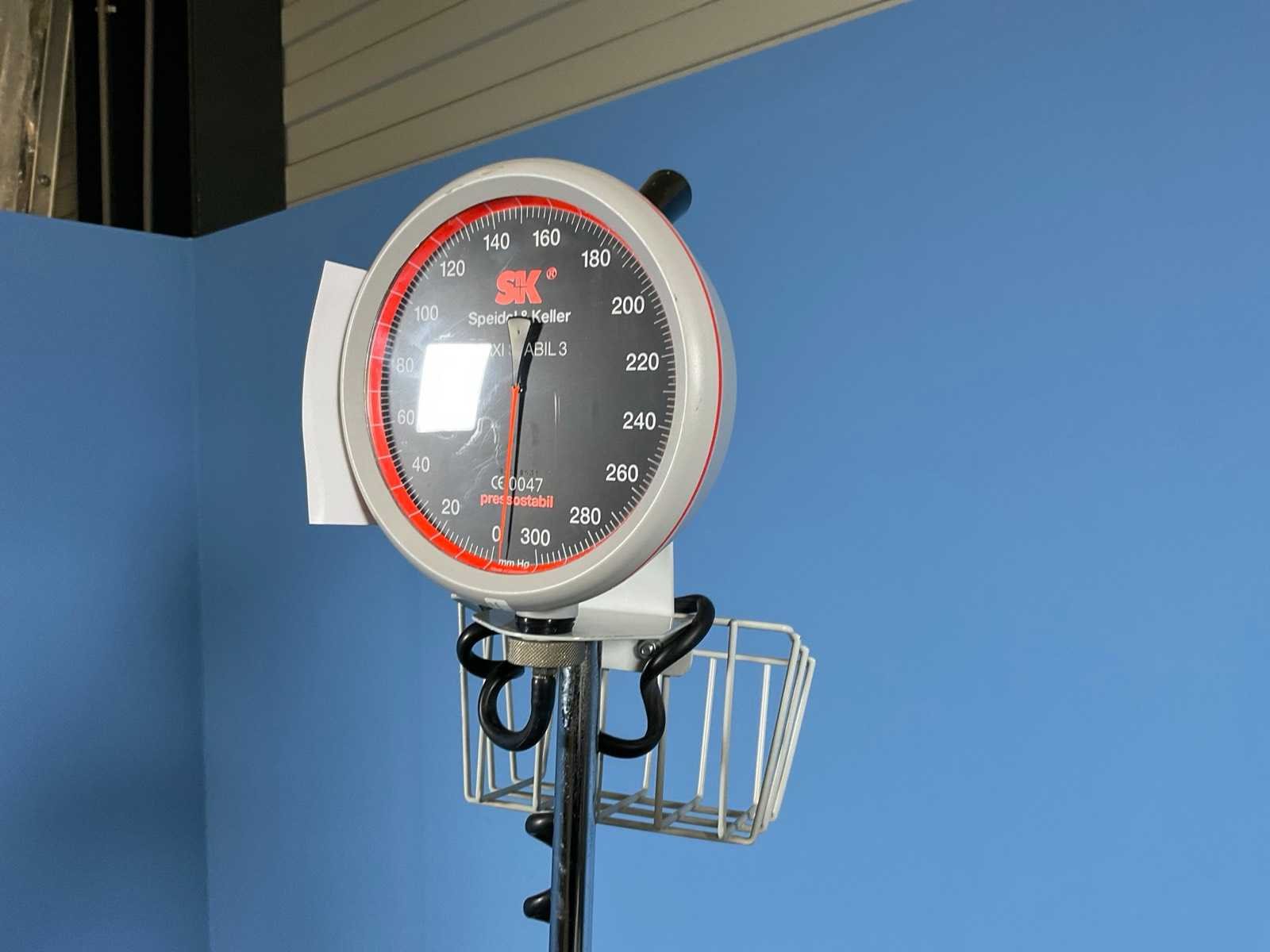 Maxi Stabil 3 bloeddrukmeter Merk: Speidel + Keller Gewicht: 5kg Bouwjaar: 1997 Serienummer: 97082531 Totale afmeting L: 450mm Totale afmeting Breedte: 450mm Totale afmeting Hoogte: 1150mm