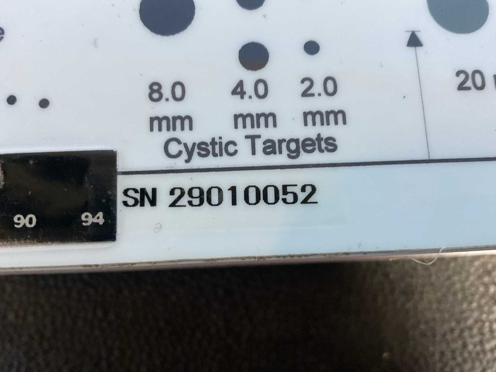 Multipurpose echografiefantoom Merk: ATS Laboratories Gewicht: 3kg Bouwjaar: 2009 Serienummer: 29010052 Totale afmeting L: 280mm Totale afmeting Breedte: 270mm Totale afmeting Hoogte: 100mm