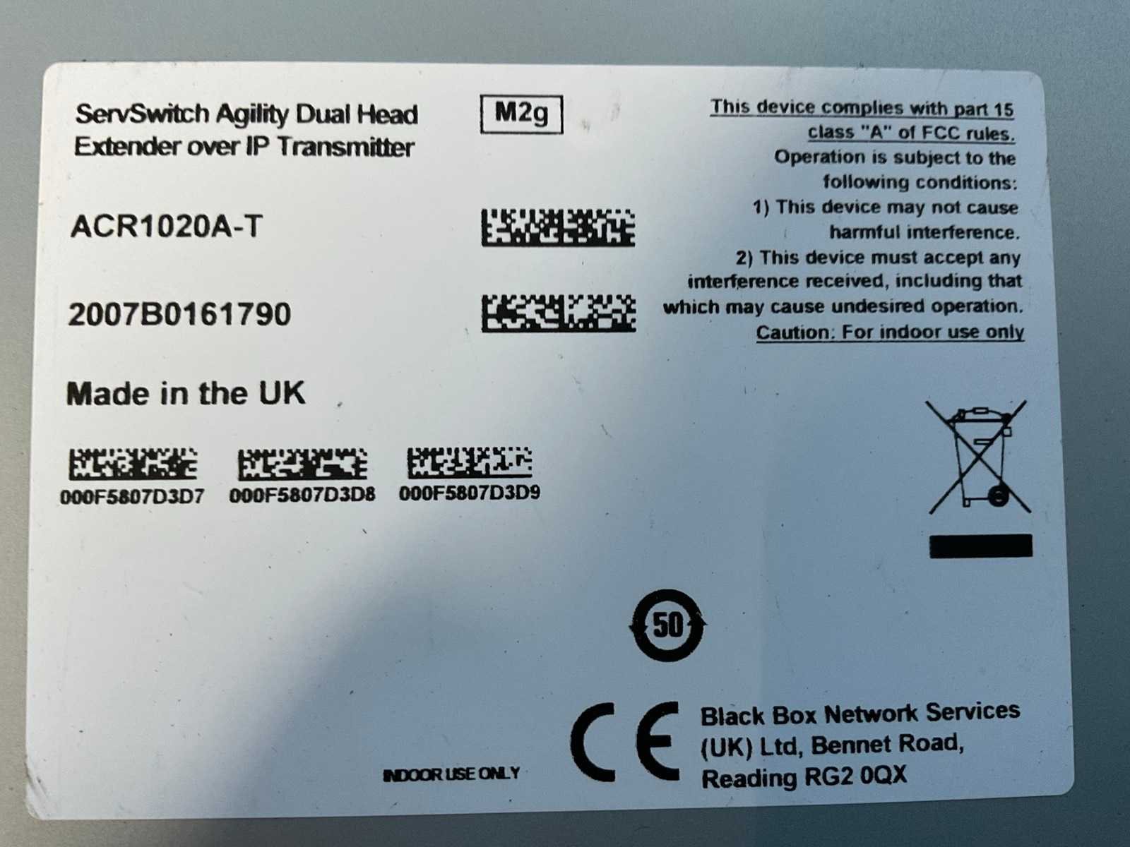 Agility Dual Head - KVM-switch Merk: BLACK BOX INTERNATIONAL B.V. Bouwjaar: 2017 Serienummer: 2007B0161790
