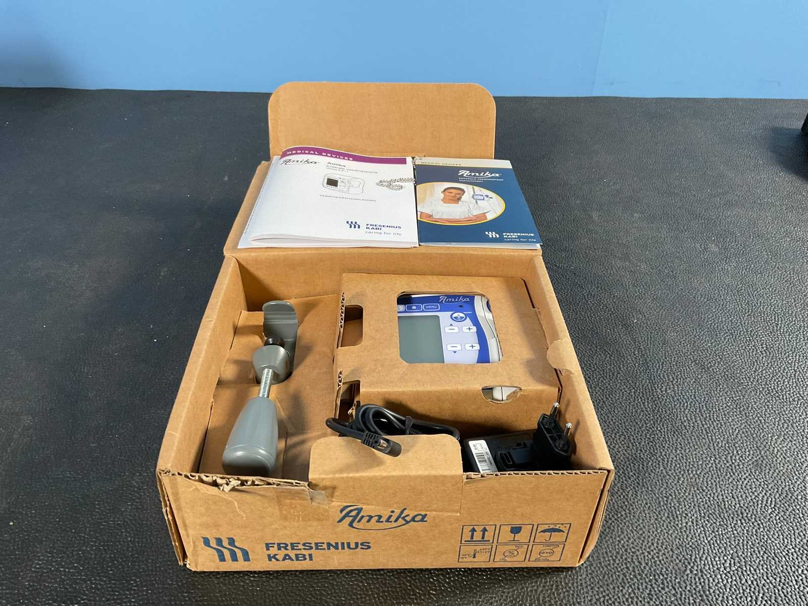 Ongebruikt in doos met standaard toebehoren Merk: Fresenius Gewicht: 2kg Type: Amika Bouwjaar: 2020 Serienummer: 24454732 Totale afmeting L: 270mm Totale afmeting Breedte: 230mm Totale afmeting Hoogte: 110mm