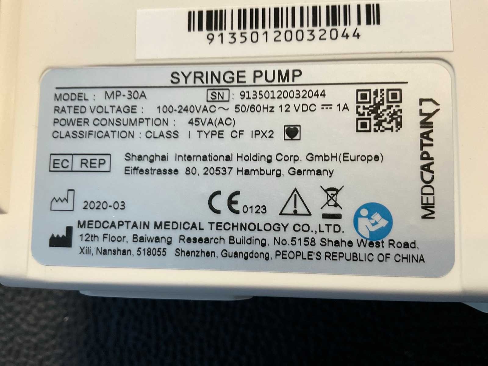 Merk: Medcaptian Type: MP-30 Bouwjaar: 2020 Serienummer: 91350120032662, 91350120031919, 91350120032044 Aansluiting: 230V Totale afmeting L: 160mm Totale afmeting Breedte: 250mm Totale afmeting Hoogte: 70mm