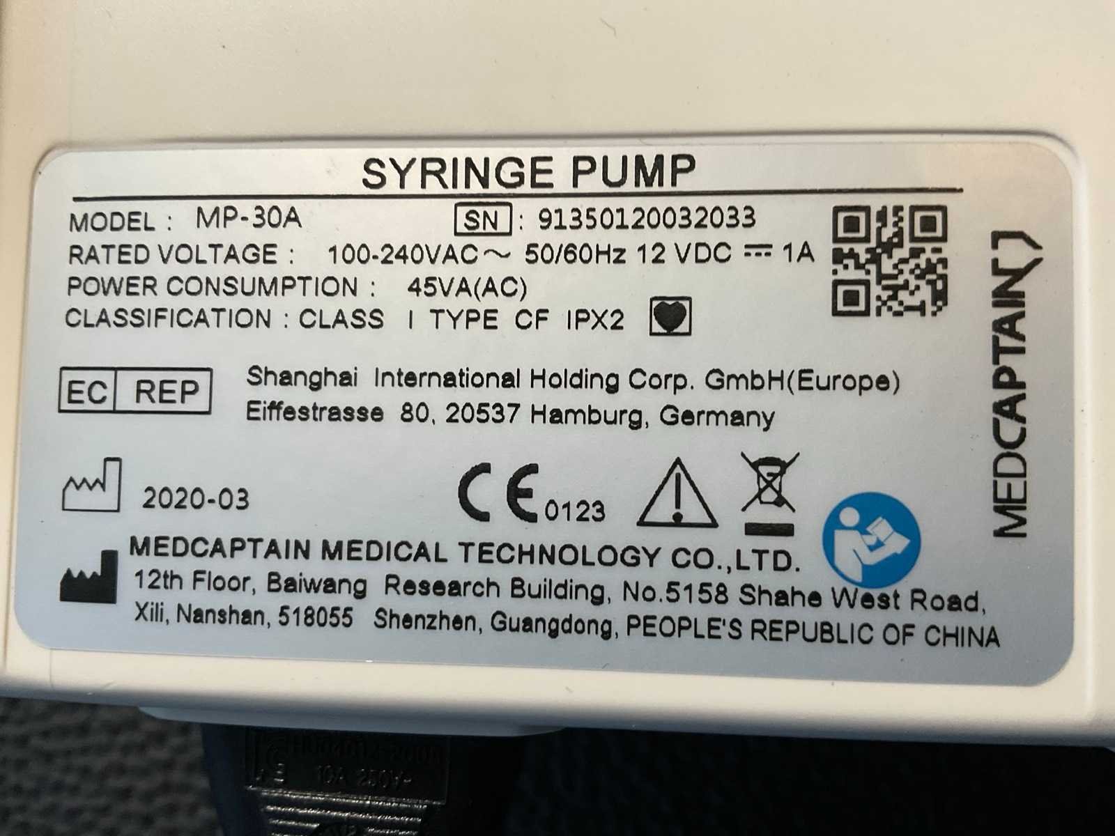 Merk: Medcaptian Type: MP-30 Bouwjaar: 2020 Serienummer: 91350120032033 Aansluiting: 230V Totale afmeting L: 160mm Totale afmeting Breedte: 250mm Totale afmeting Hoogte: 70mm