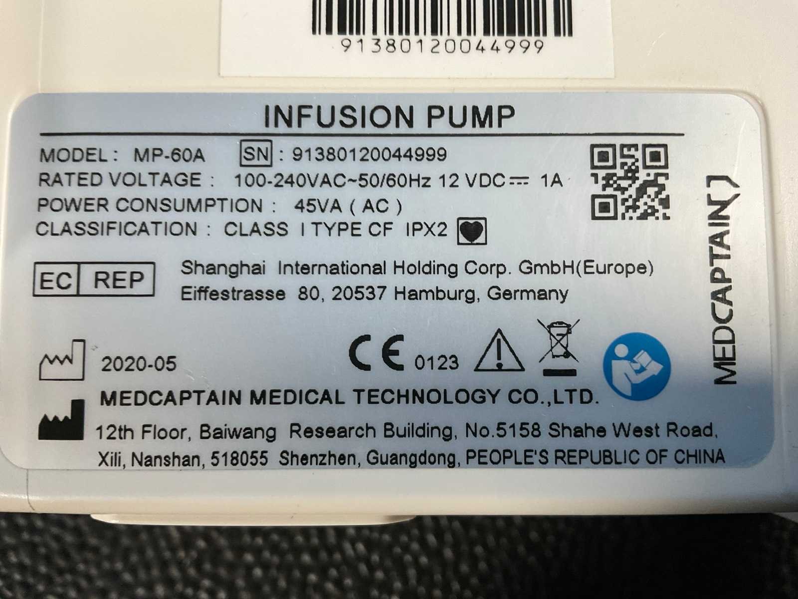 Merk: Medcaptian Type: MP-60 Bouwjaar: 2020 Serienummer: 91380120045029 Aansluiting: 230V Totale afmeting L: 130mm Totale afmeting Breedte: 200mm Totale afmeting Hoogte: 72mm