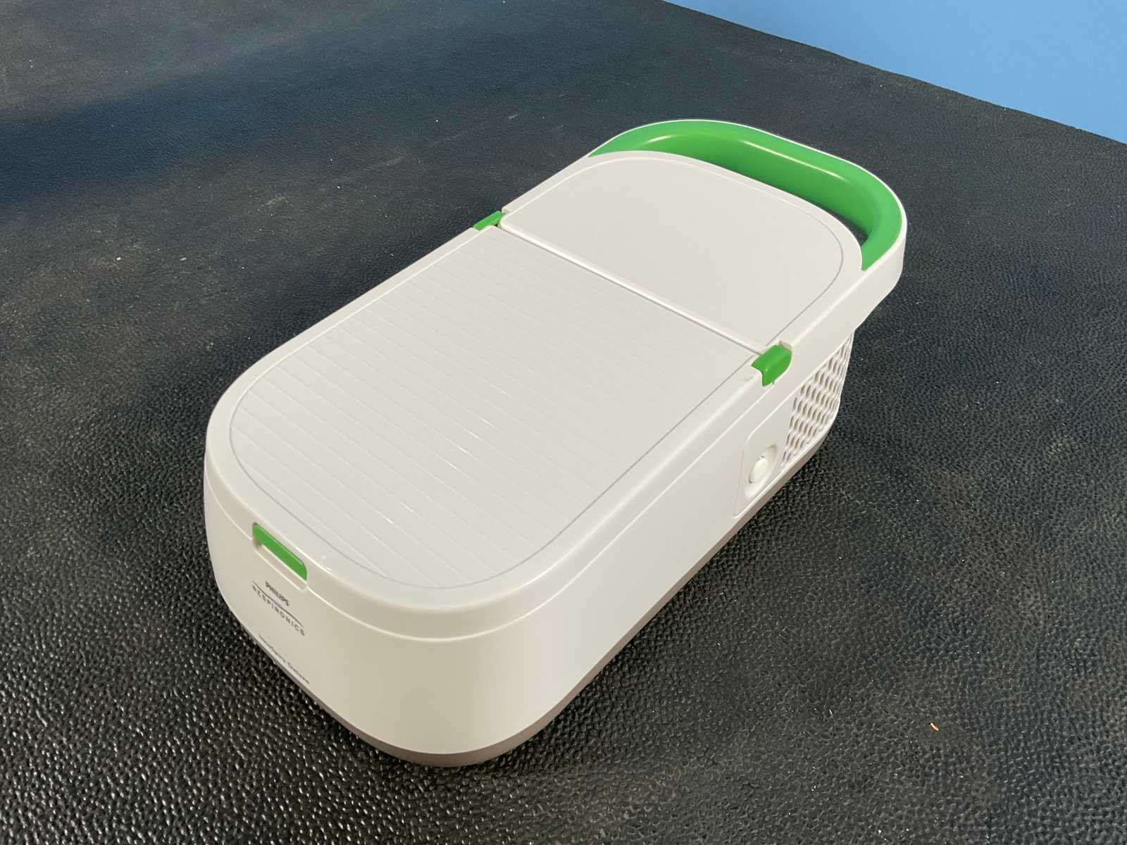 Ongebruikt in doos Merk: Philips Respironics Type: InnoSpire Deluxe Serienummer: 104637, 104636 Aansluiting: 230V Totale afmeting L: 120mm Totale afmeting Breedte: 175mm Totale afmeting Hoogte: 410mm