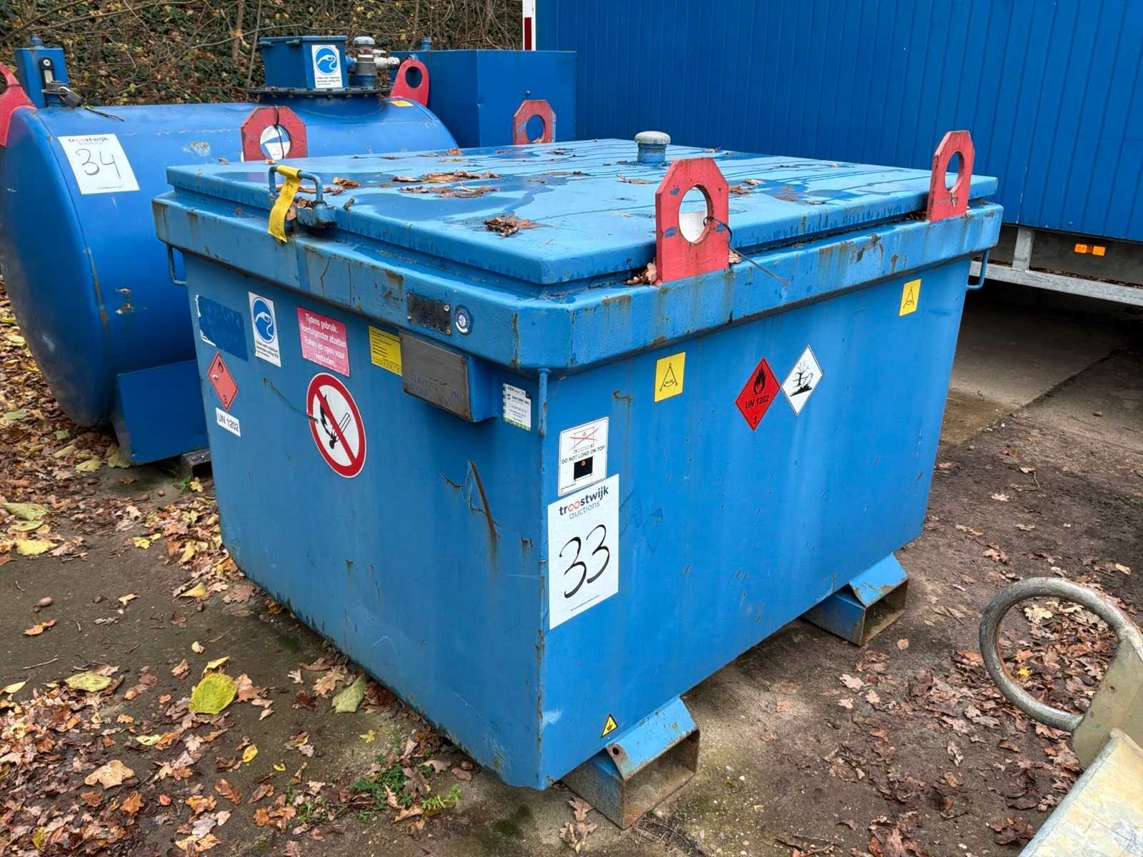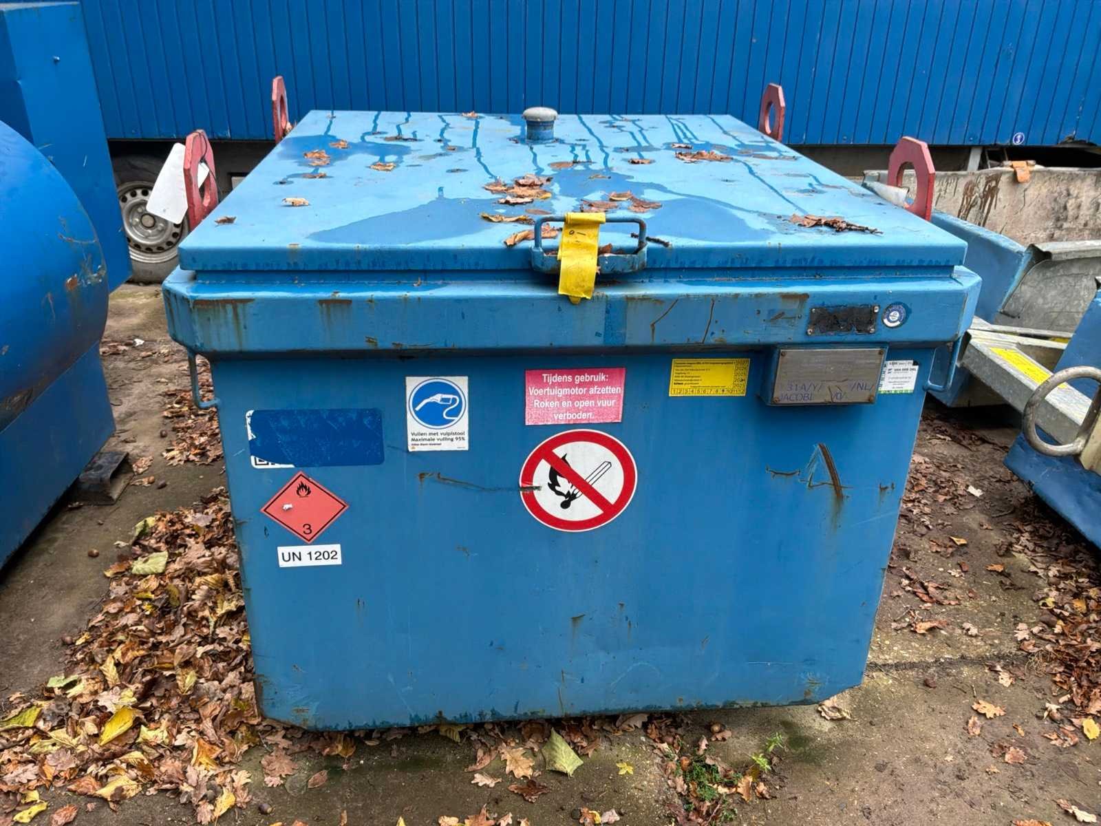 Voorzien van: vulpistool en pomp. Merk: Jacobi tanks Totale afmeting Breedte: 1220mm Capaciteit.: 600l Staal: true Totale afmeting L: 1370mm Totale afmeting Hoogte: 1000mm