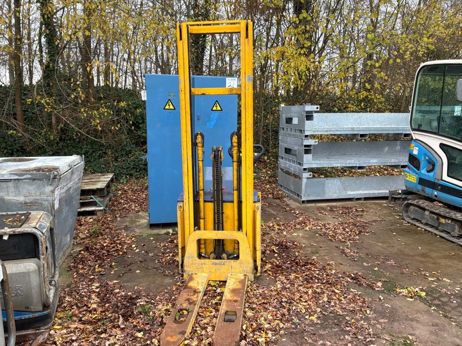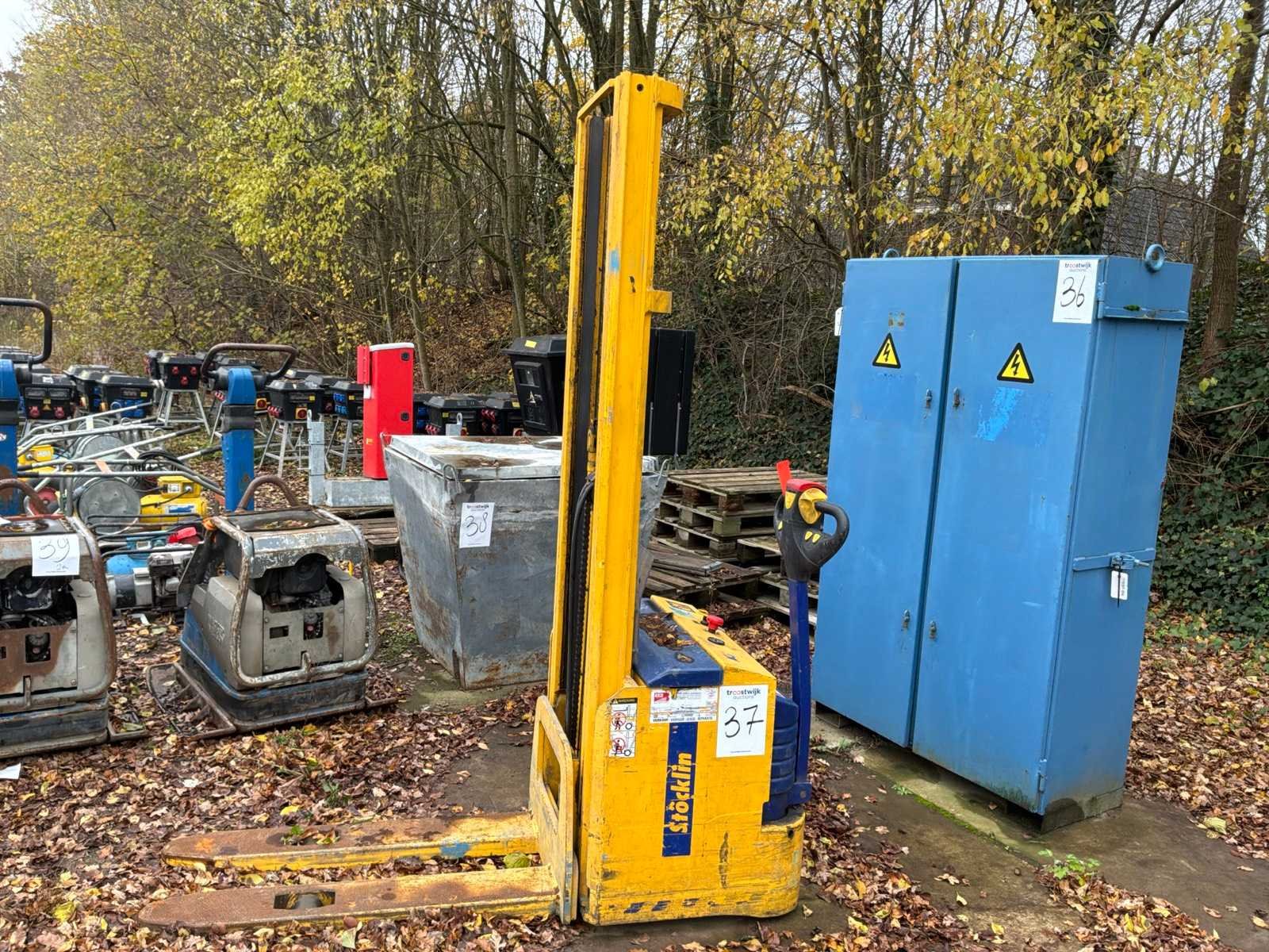 Machine staat al geruime tijd buiten Merk: Stöcklin Type: EDS Lepellengte: 1140mm Accu lader: true Totale afmeting L: 1940mm Totale afmeting Breedte: 800mm Totale afmeting Hoogte: 2400mm