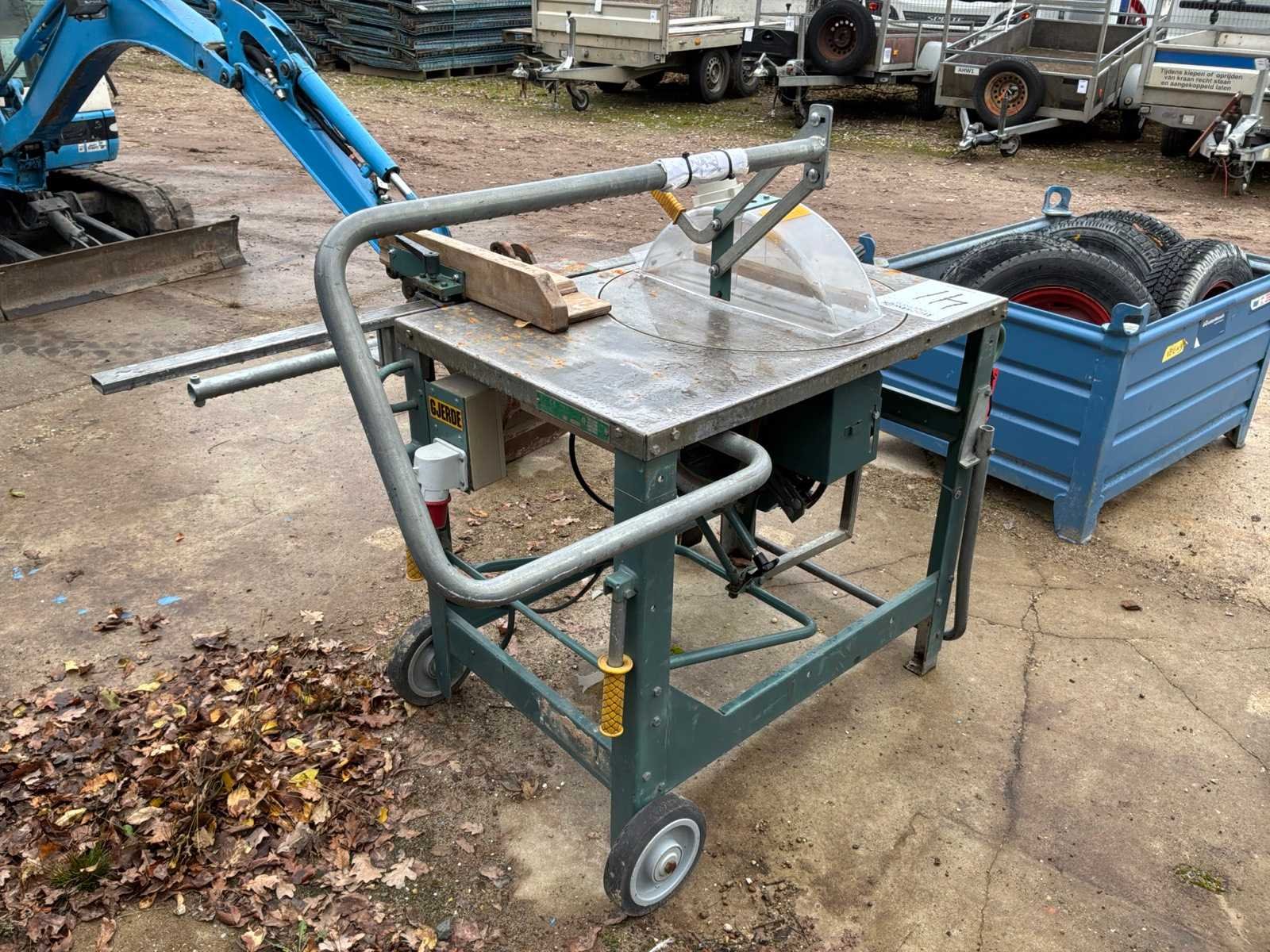 Zaag staat al geruime tijd buiten Merk: Gjerde Model: 1603 Spanning: 400V Toerental: 2300p/min Diameter zaagblad: 400 Lengte: 820mm Breedte: 1600mm Hoogte: 1200mm