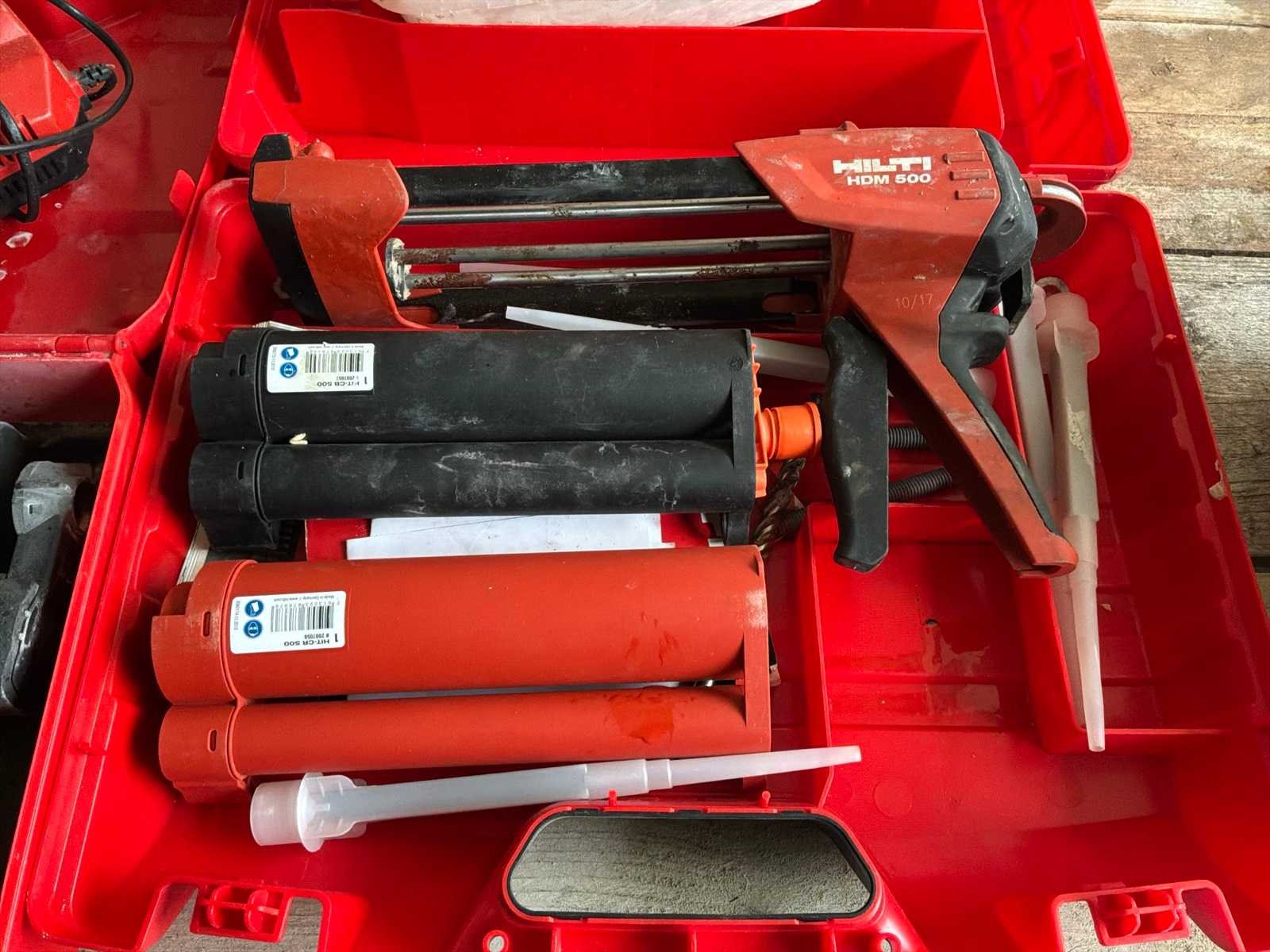 2 x kitspuit (1 x Hilti, 1 x Fisher) 1 x Hilti boorstofzuiger, 1 x Hilti oplader. Merk: Hilton / fisher