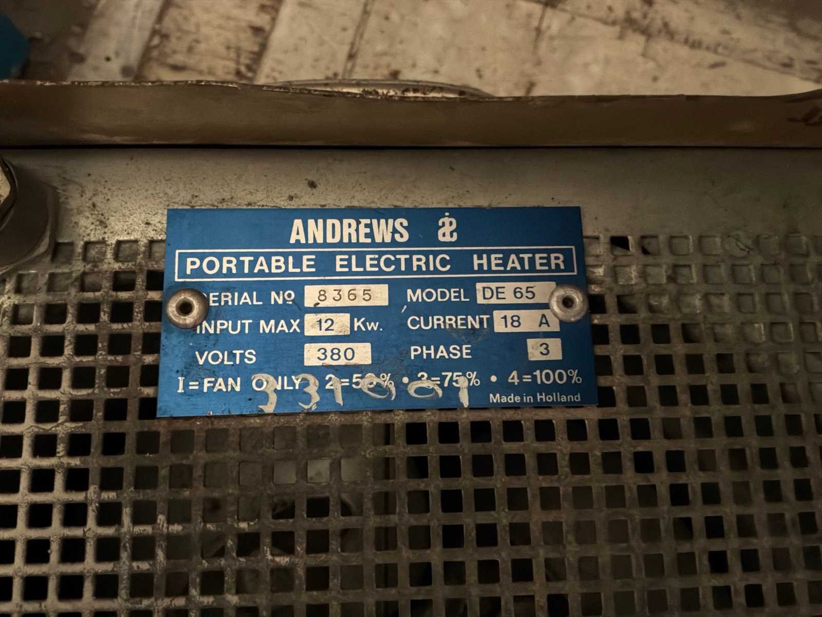 Merk: Andrews Type: DE65 Vermogen: 12kW Aansluiting: 400V