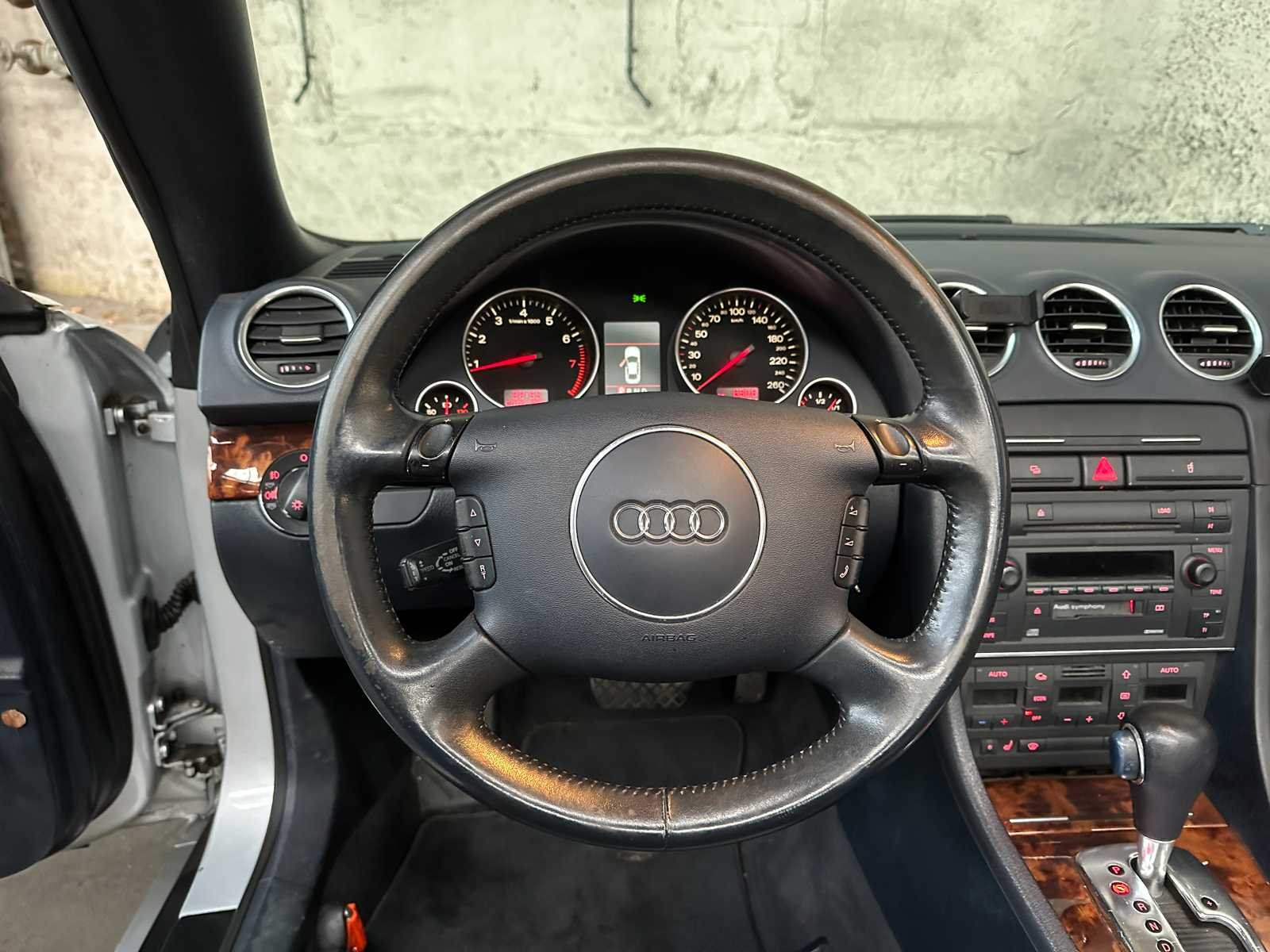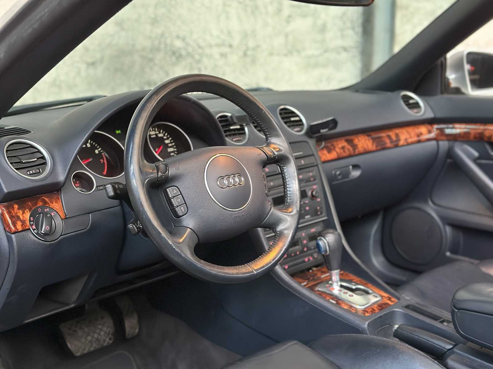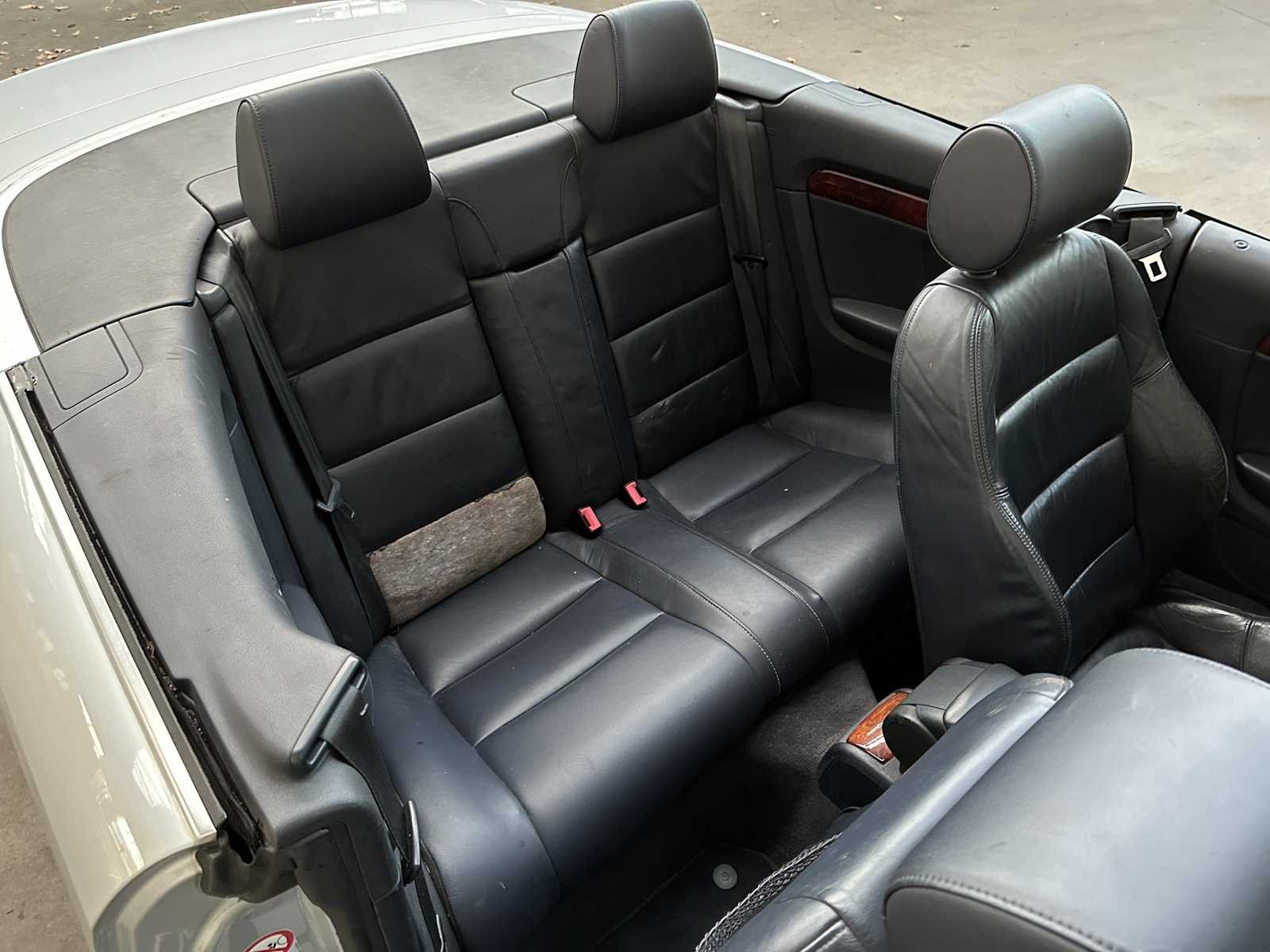 Kenteken: 38-LR-TT Merk: Audi Model: A4 Cabriolet Type: 3.0 V6 Exclusive Afgelezen kilometerstand: 323479km Cilinderinhoud: 2976cc Vermogen (kW): 162kW Brandstof: Benzine Chassisnummer: WAUZZZ8H93K028560 NAP status: Logisch Datum eerste toelating: 2003-04-18 Datum eerste toelating (NL): 2003-04-18 APK vervaldatum: 2026-05-25 Vermogen (pk): 220hp Aandrijving: voor Aantal zitplaatsen: 4 Kleur: grijs Transmissie: Automaat Stuurwiel: Links Emissieklasse: 4 Aantal deuren: 2 Ledig gewicht: 1595kg Bruto BPM (NL): 17997€ Aantal cilinders: 6 Carrosserie: cabriolet Nationaliteit documenten: Nederlandse kentekendocumenten