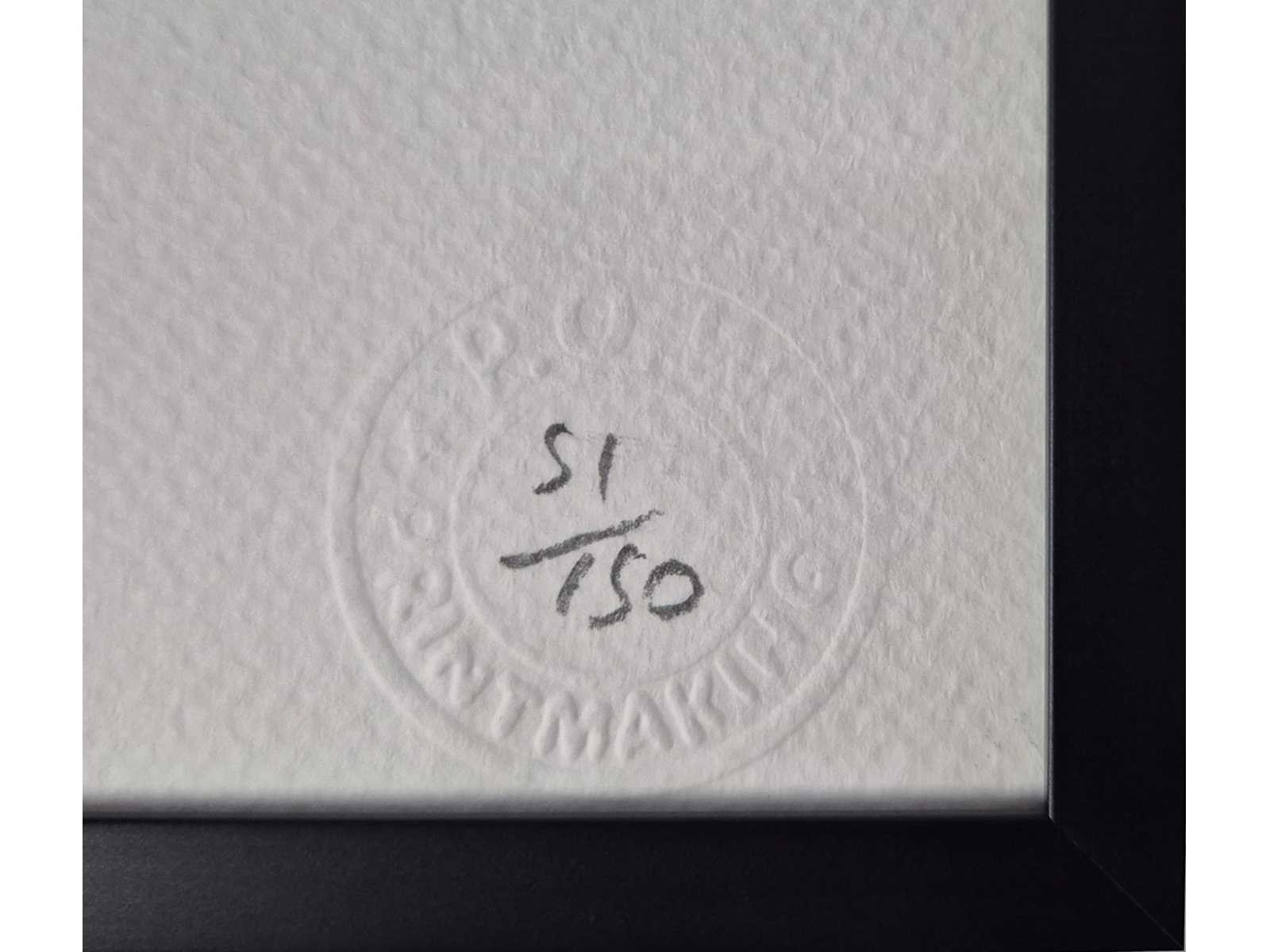 Genummerd en gesigneerd POW stempel / olifant stempel, Compleet ingelijst. Techniek: Litho Oplage: 51/150 Hoogte: 70cm Breedte: 50cm