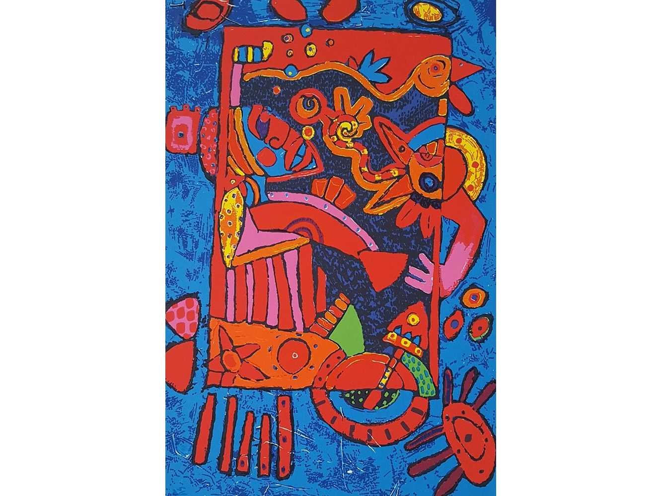 Compleet ingelijst. Titel van werk: La Reine Amoureux Techniek: Zeefdruk