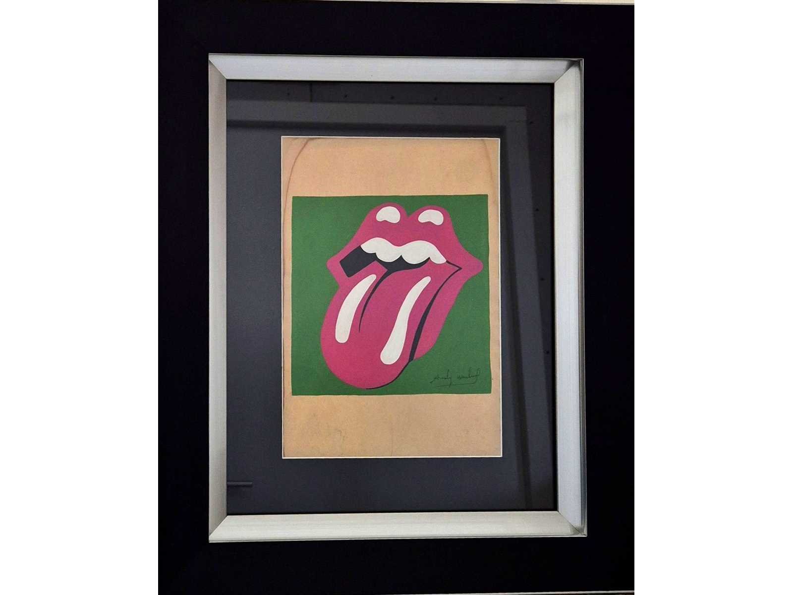 Gesigneerd in het kunstwerk, Estate of Andy Warhol, Inclusief Lijst. Titel van werk: Stones Tong Techniek: Gouache Hoogte: 52cm Breedte: 43cm