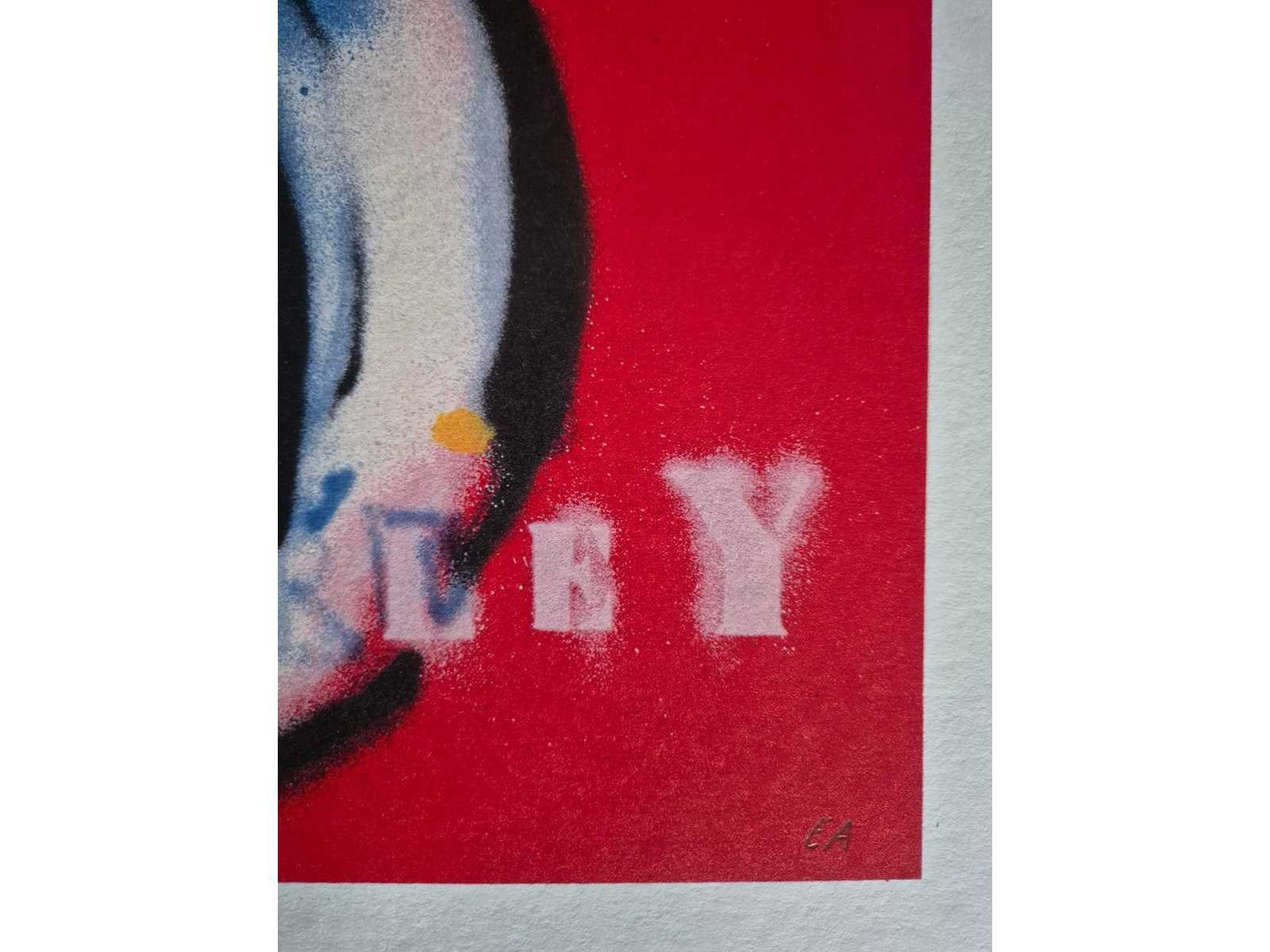 Hermanus (Herman) Brood (Zwolle, 5 november 1946 – Amsterdam, 11 juli 2001) was een Nederlandse zanger, kunstschilder, pianist, acteur en auteur. Brood onderscheidde zich door zijn kenmerkende zangstem en muzikale diversiteit. Een anekdote over zijn jongensjaren luidt dat Broods huisarts in 1953 gesteld zou hebben dat Brood met zijn kleurenblindheid alles zou kunnen worden, behalve kunstschilder. Na Broods overlijden was in 2002 in het Cobra Museum in Amstelveen een eerste overzichtstentoonstelling van zijn werk te zien, met daarnaast foto's, gemaakt door zijn vriend, de fotograaf Anton Corbijn. Eerder was het werk van Brood museaal nooit erkend, hoewel zijn werk al veel eerder te zien was voor publiek, zoals tussen 8 en 22 november 1984 in Groningen.[8] Er waren echter wel veel liefhebbers en zijn schilderwerk werd goed verkocht. Titel van werk: Fatboy Techniek: Zeefdruk Hoogte: 87cm Breedte: 108cm
