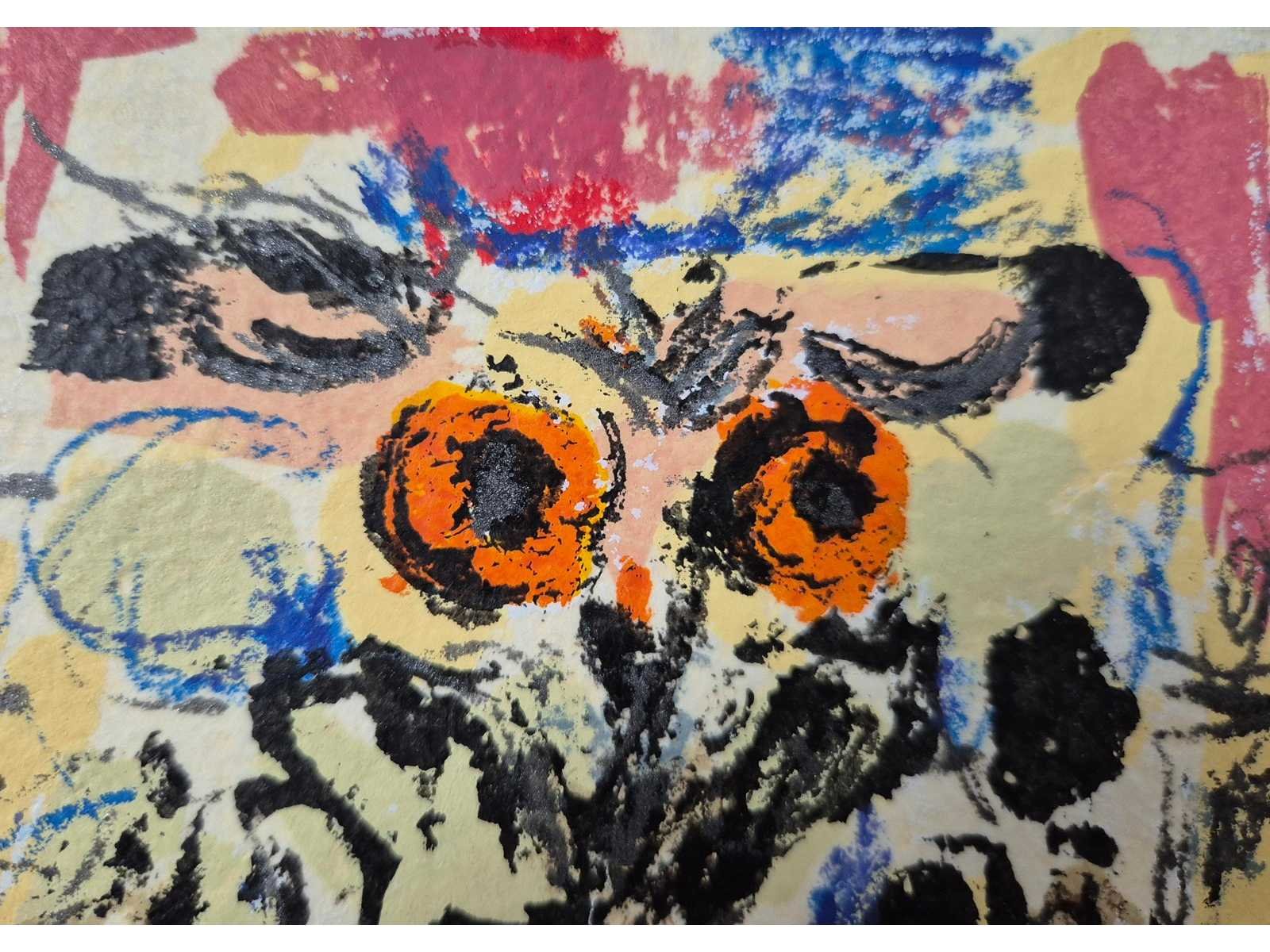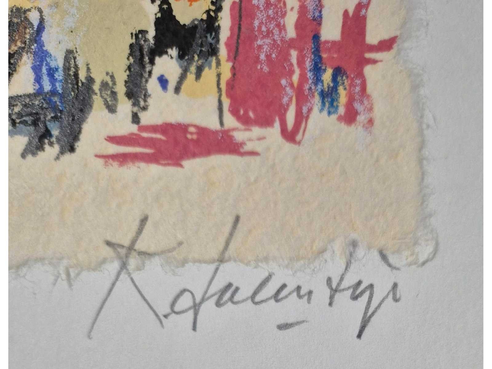 Kees Salentijn: (Amsterdam 1947) is schilder, collagist en tekenaar. Salentijn volgde de opleiding aan de Amsterdamse Rijksacademie van beeldende kunsten, afdeling vrije schilderskunst bij Otto de Kat (1907) en aan de Gerrit Rietveld Academie. Salentijn richt zich in zijn werk op onbewuste spontane creatie en voelt zich verwant met diverse stromingen die dat ook doen waaronder Cobra. Een andere belangrijke invloed is zijn liefde voor het Spaanse leven: stierenvechten, stranden, feesten en landschappen die typisch voor Spanje zijn zijn dan ook alom aanwezig in zijn werk. Techniek: Zeefdruk Oplage: 53/120 Hoogte: 30cm Breedte: 24cm