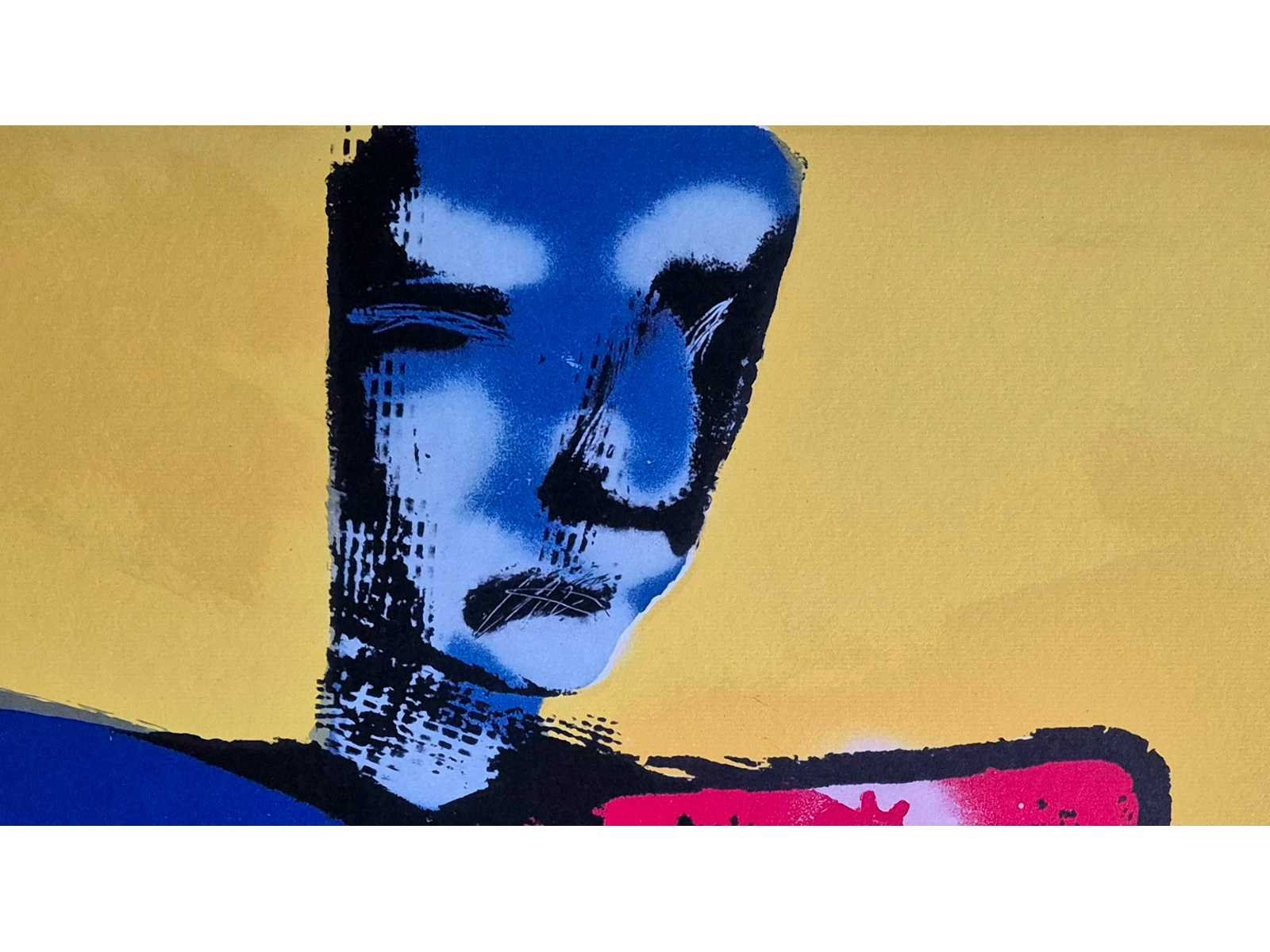 Hermanus (Herman) Brood (Zwolle, 5 november 1946 – Amsterdam, 11 juli 2001) was een Nederlandse zanger, kunstschilder, pianist, acteur en auteur. Brood onderscheidde zich door zijn kenmerkende zangstem en muzikale diversiteit. Een anekdote over zijn jongensjaren luidt dat Broods huisarts in 1953 gesteld zou hebben dat Brood met zijn kleurenblindheid alles zou kunnen worden, behalve kunstschilder. Na Broods overlijden was in 2002 in het Cobra Museum in Amstelveen een eerste overzichtstentoonstelling van zijn werk te zien, met daarnaast foto's, gemaakt door zijn vriend, de fotograaf Anton Corbijn. Eerder was het werk van Brood museaal nooit erkend, hoewel zijn werk al veel eerder te zien was voor publiek, zoals tussen 8 en 22 november 1984 in Groningen.[8] Er waren echter wel veel liefhebbers en zijn schilderwerk werd goed verkocht. Titel van werk: Guitar Man Techniek: Zeefdruk Hoogte: 74cm Breedte: 121cm