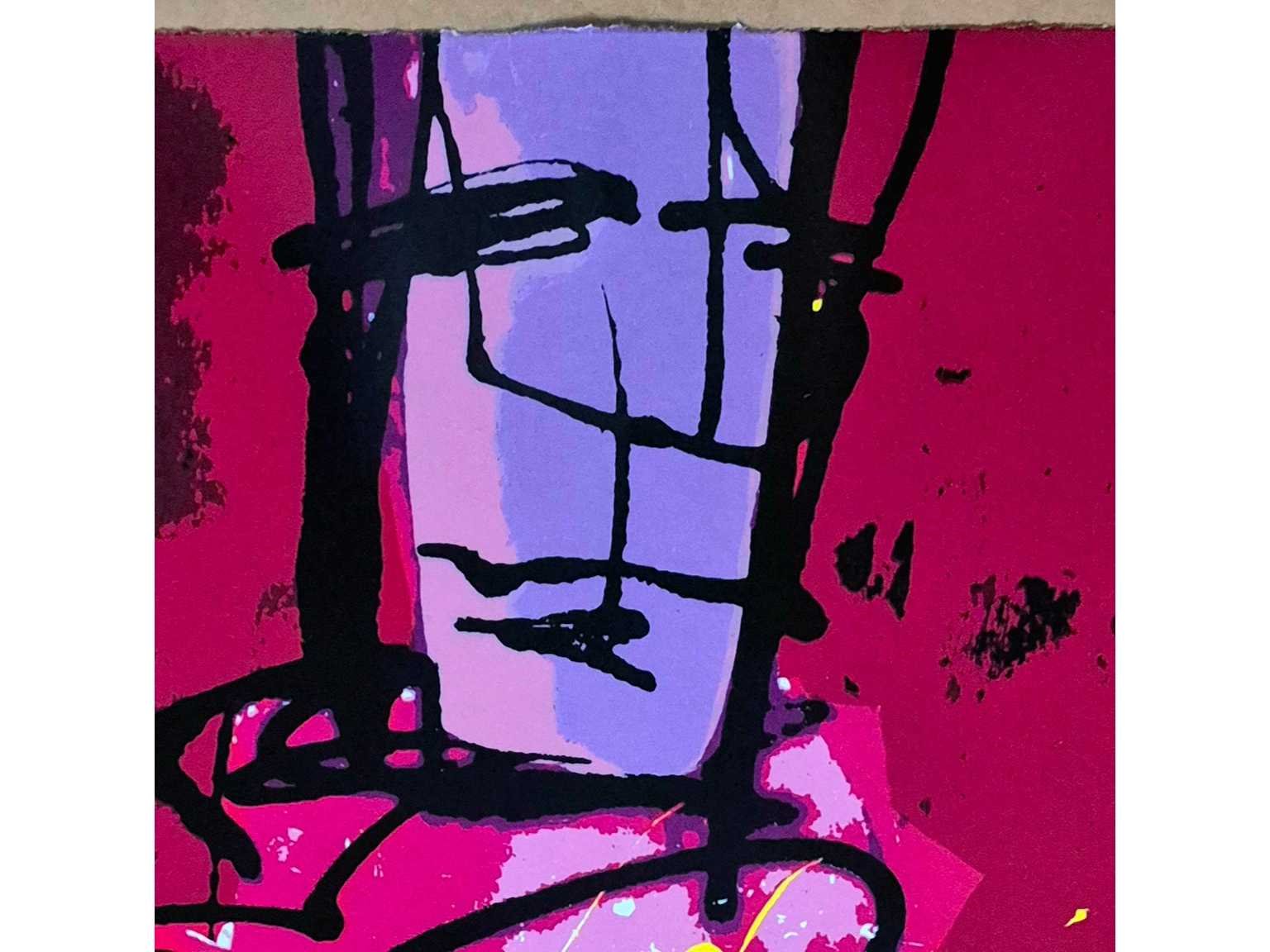Hermanus (Herman) Brood (Zwolle, 5 november 1946 – Amsterdam, 11 juli 2001) was een Nederlandse zanger, kunstschilder, pianist, acteur en auteur. Brood onderscheidde zich door zijn kenmerkende zangstem en muzikale diversiteit. Een anekdote over zijn jongensjaren luidt dat Broods huisarts in 1953 gesteld zou hebben dat Brood met zijn kleurenblindheid alles zou kunnen worden, behalve kunstschilder. Na Broods overlijden was in 2002 in het Cobra Museum in Amstelveen een eerste overzichtstentoonstelling van zijn werk te zien, met daarnaast foto's, gemaakt door zijn vriend, de fotograaf Anton Corbijn. Eerder was het werk van Brood museaal nooit erkend, hoewel zijn werk al veel eerder te zien was voor publiek, zoals tussen 8 en 22 november 1984 in Groningen.[8] Er waren echter wel veel liefhebbers en zijn schilderwerk werd goed verkocht. Titel van werk: Purple Haze Techniek: Zeefdruk Hoogte: 90cm Breedte: 75cm